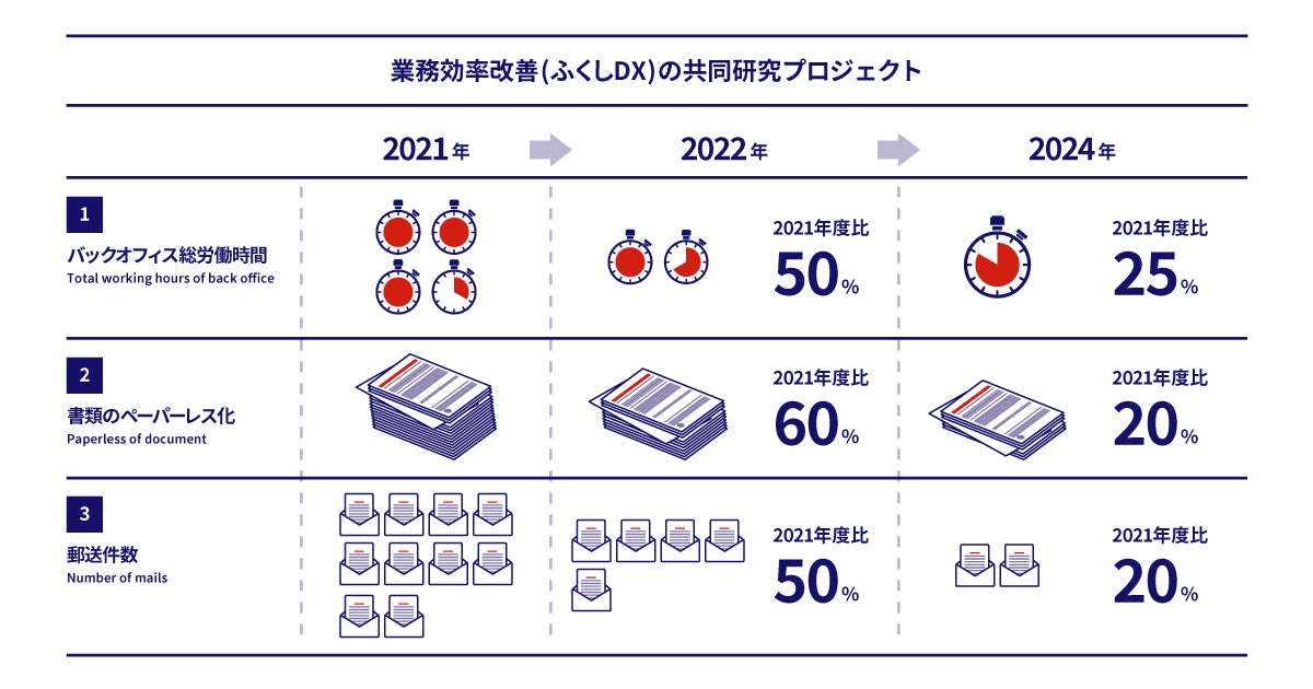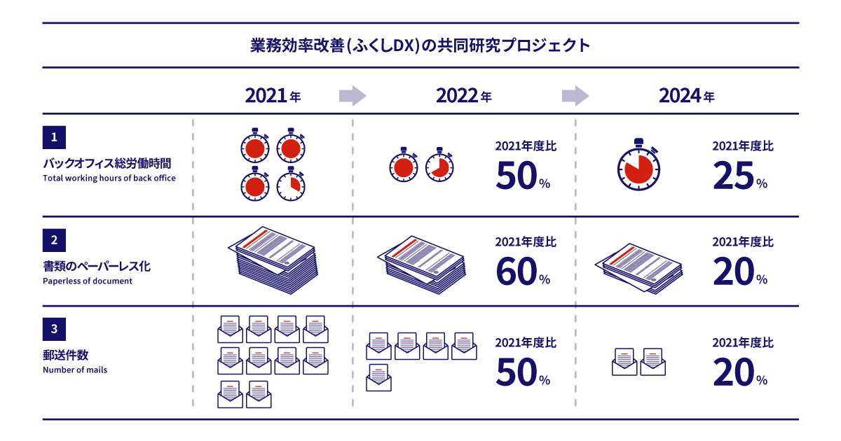 ・業務効率改善項目:バックオフィス総労働時間・書類のペーパーレス化・郵送件数
