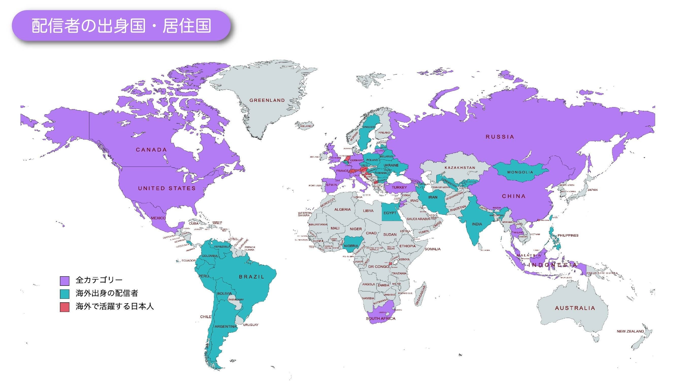 リリース以降、約1ヶ月経過していますが、有料会員数は既に1万名を超え、プラットフォームに参加する配信者の出身国・居住国数は既に60ヶ国を超えており、世界の多くの国・地域の生の声を、国境を越えることなく、また、メディアを介すことなく直接見聞できる、新たな国際交流コミュニティとなっております。