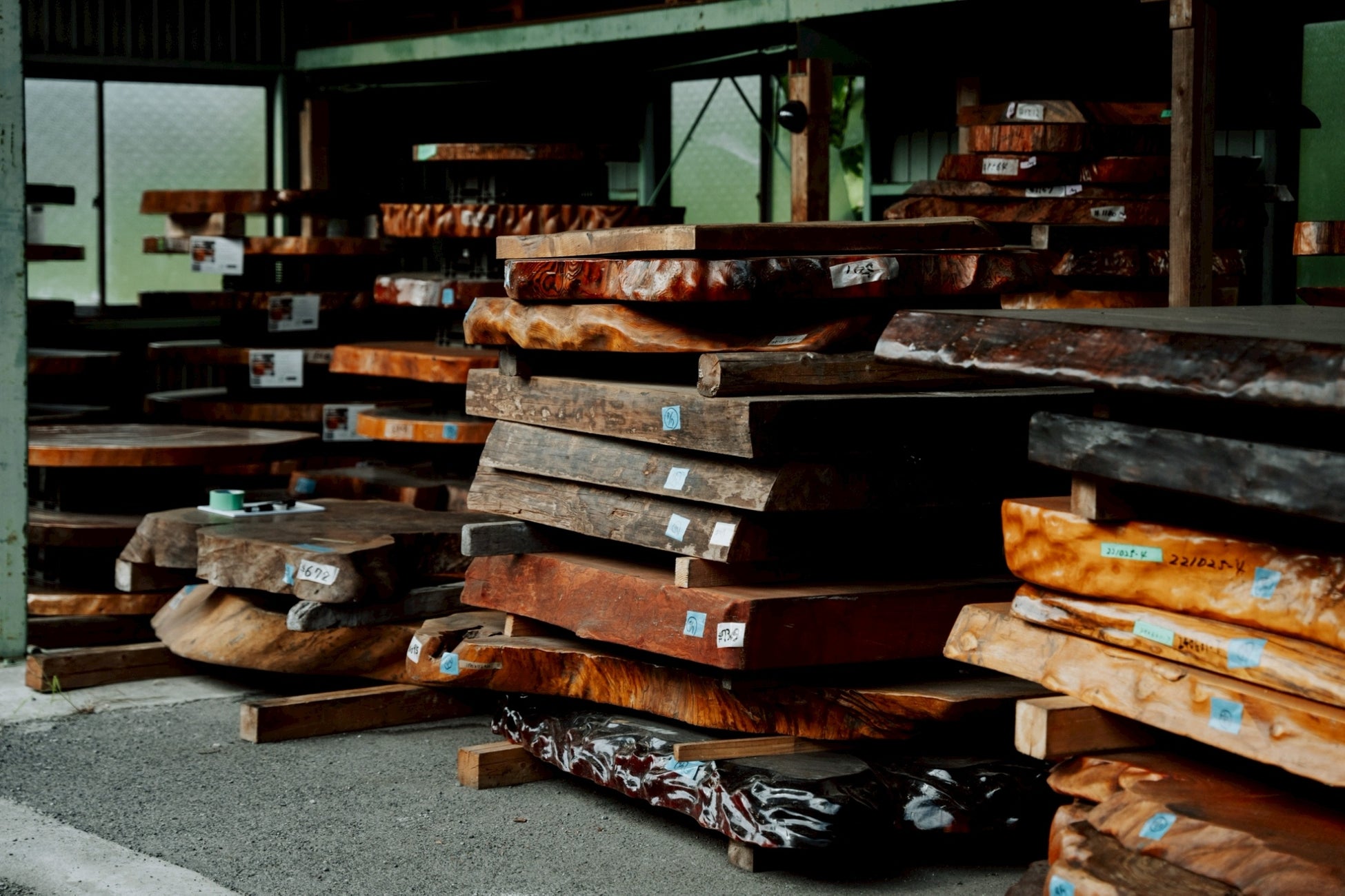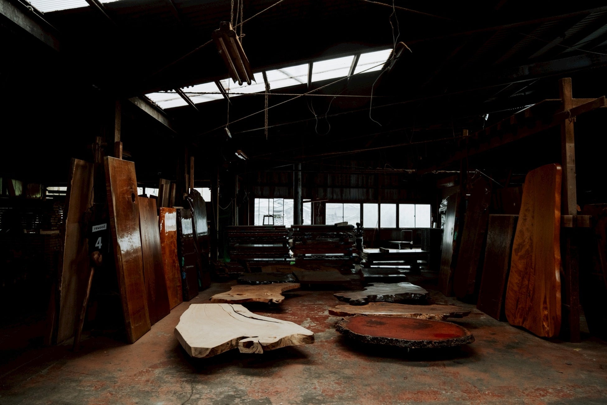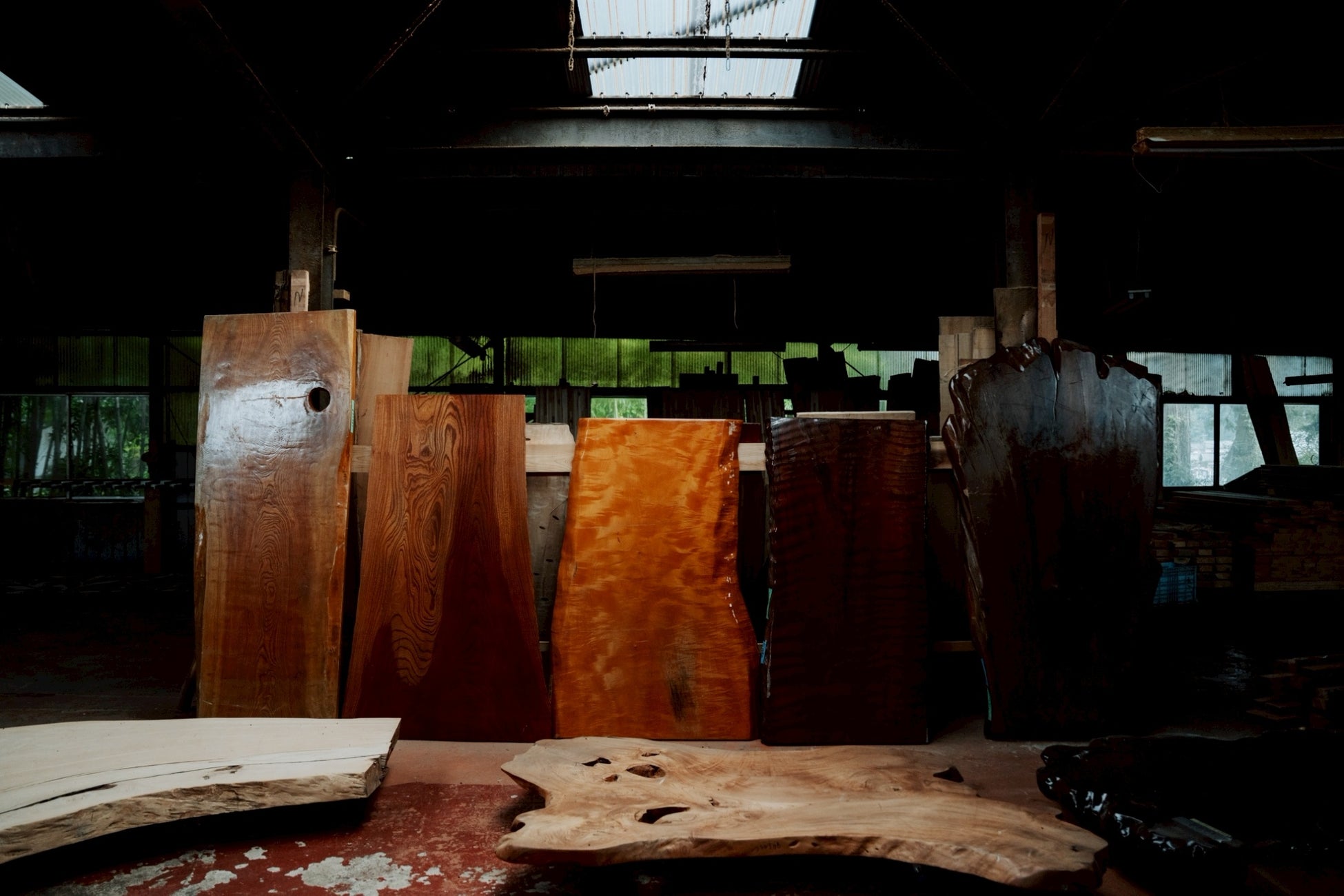 ① 全国から集まった“一枚板の素材庫”をそのまま公開