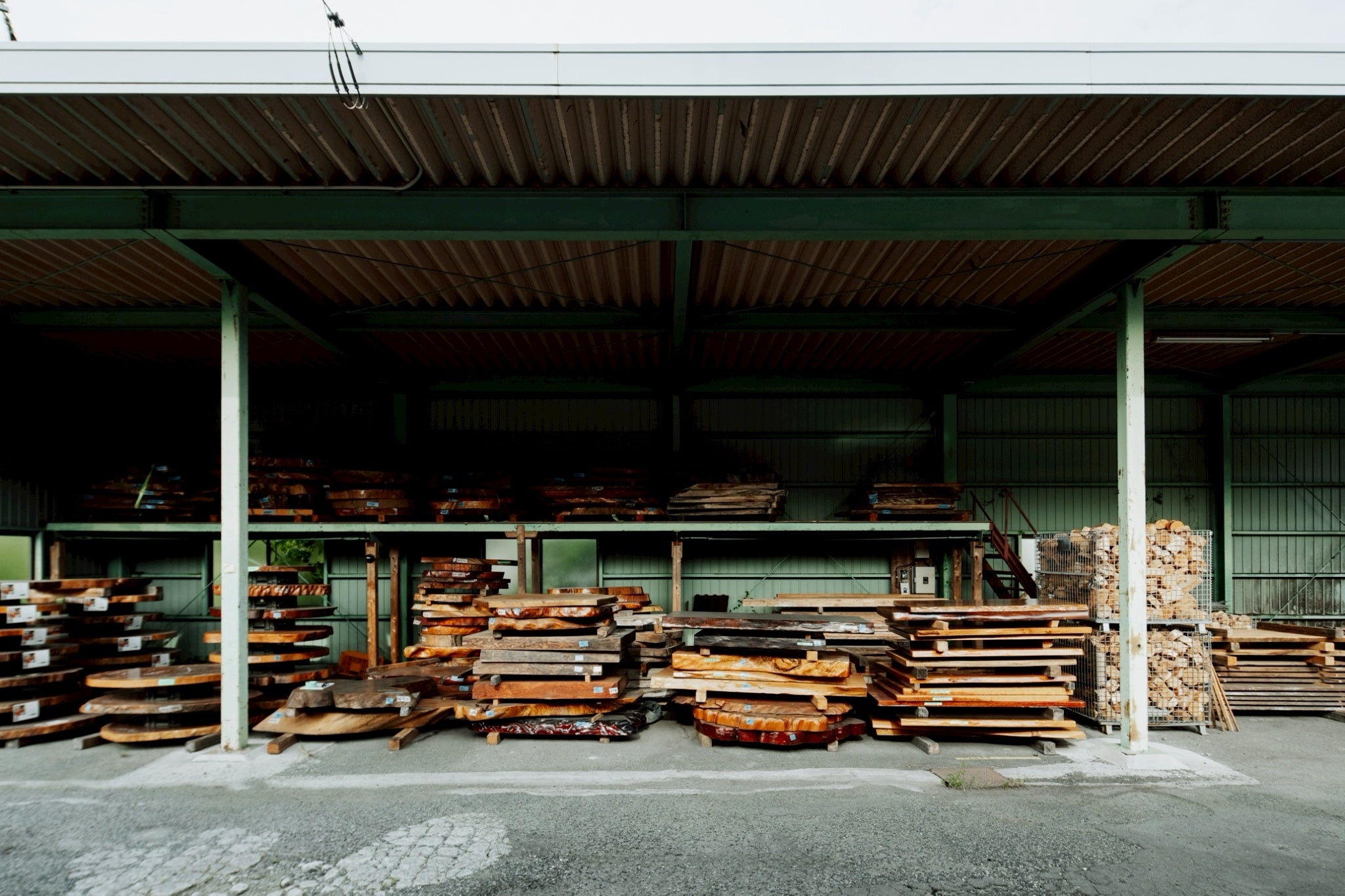 本施設は、全国からレスキューされてきた約1,700枚の一枚板を保管する倉庫を、