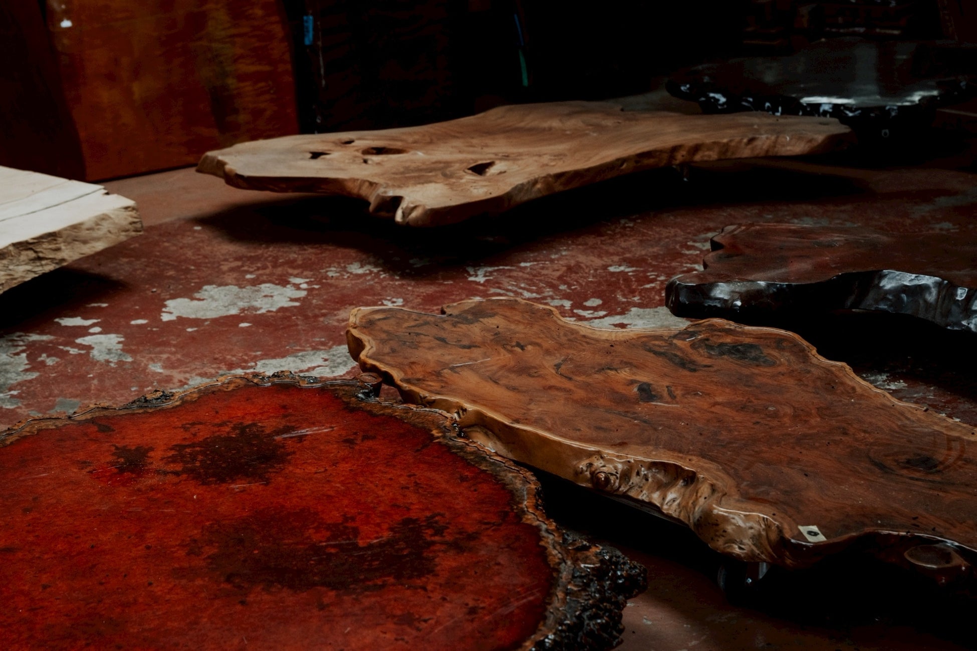 座卓や店舗カウンター、解体建築などから生まれた一枚板をレスキューし、