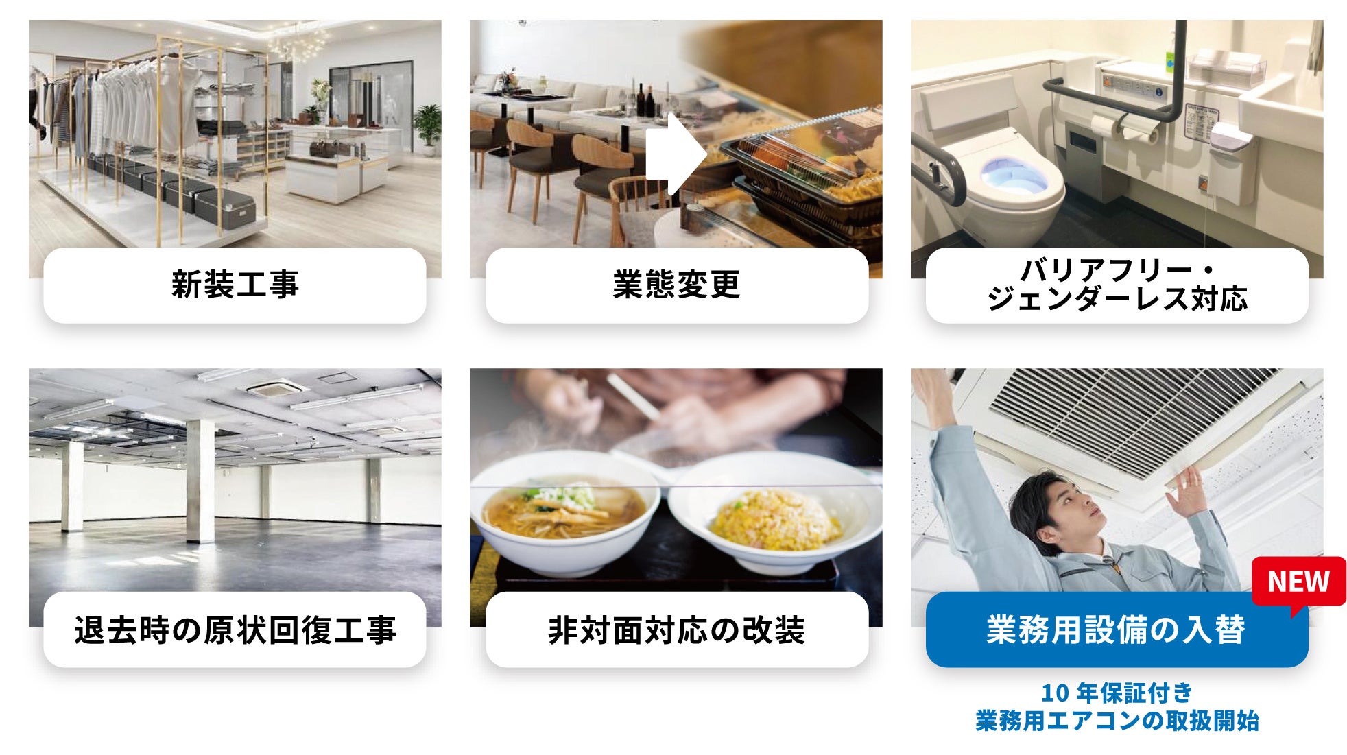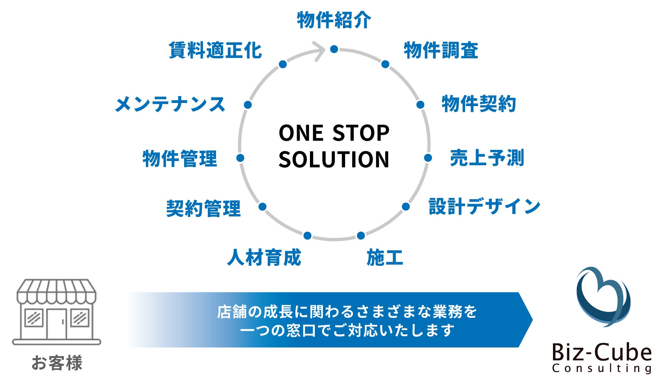 また、内装の設計デザイン・施工のみならず、出店候補物件の紹介・商圏分析や売上予測、 店舗スタッフの教育と評価制度の開発、 店舗賃料の適正化、店舗管理、メンテナンスなど、店舗の上流から下流まで様々なソリューションを提供し、あらゆる側面からお客様の店舗経営を持続的にサポートいたします。