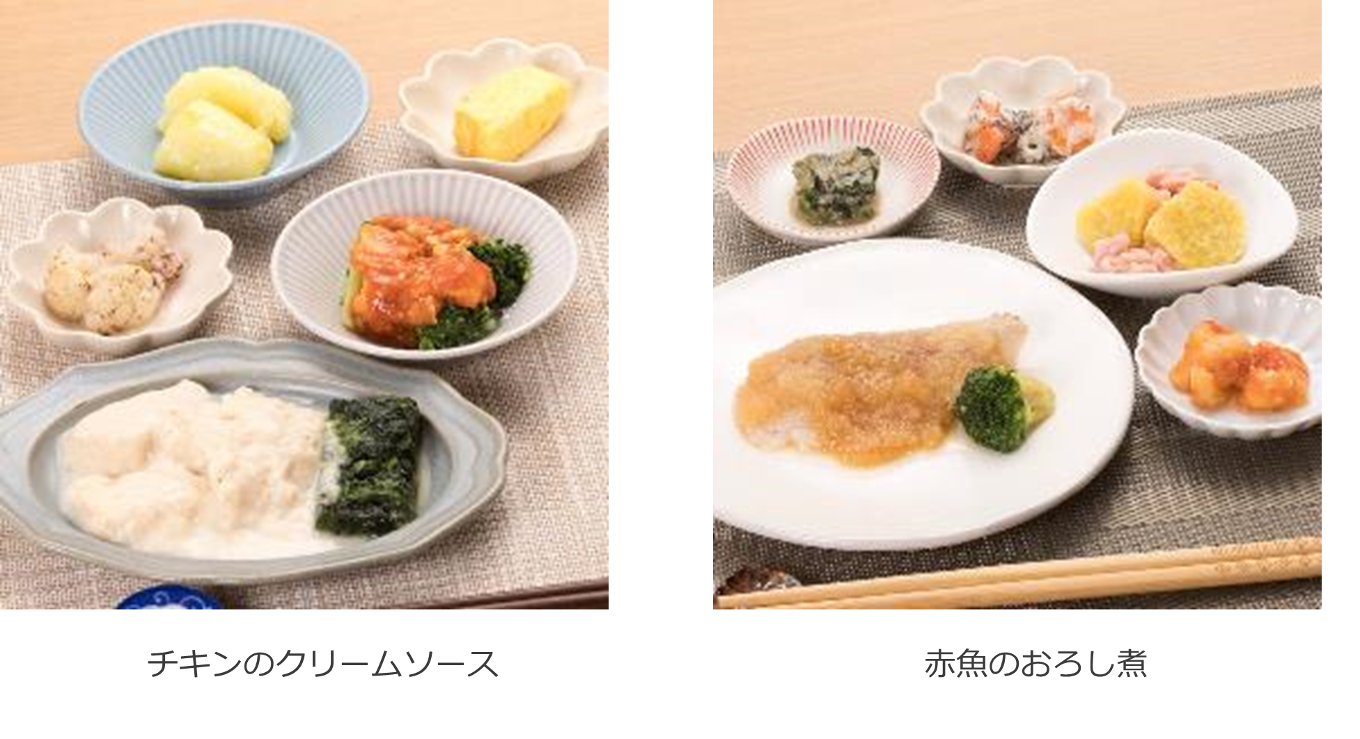 ・いずれのセットも、嗜好や体調、アレルギーなどに合わせて、42種類のメニューから入れ替えが可能です。