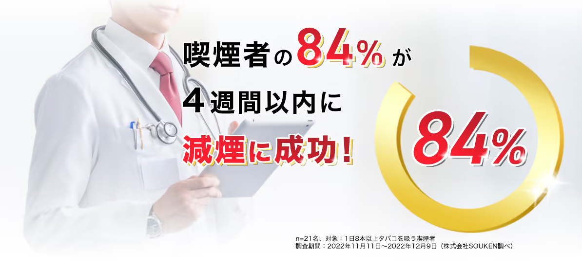 - 「喫煙者の84%が4週間以内に減煙に成功!」