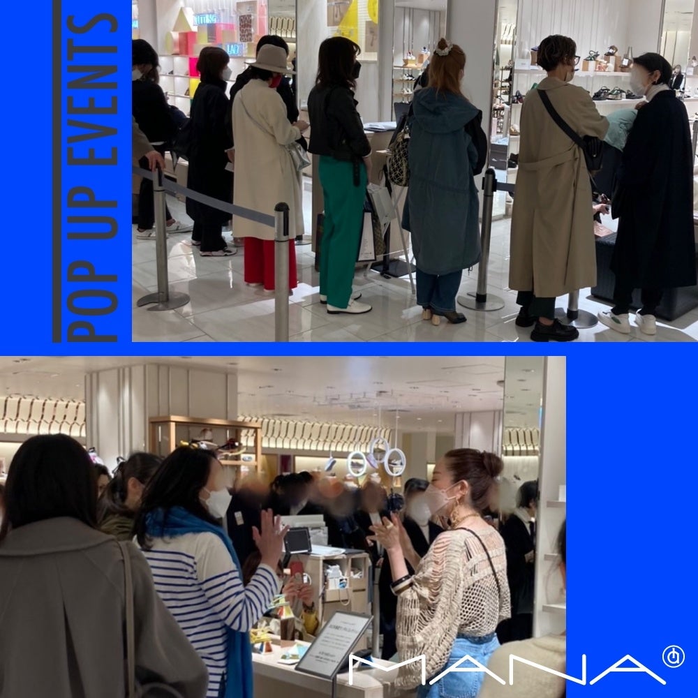 本イベントでは、【肌映えShoes】をテーマに新作の初夏を先取る華やかなサンダル、スニーカーアイテムの販売を開催し、合計100人を超えるお客様に来場して頂きました。うめだ阪急でのMANAデザイナー今西の来店日には、日別売上が百貨店内の人気ブランドを抑えて高い売上を達成いたしました。