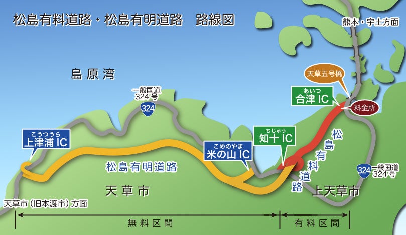 熊本都市圏と天草地域を結ぶ延長約70kmの地域高規格道路である「熊本天草幹線道路」の一部として開通した延長3.3kmの自動車専用道路