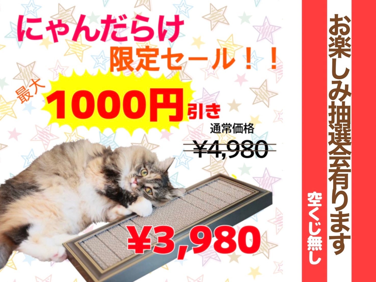 開催日には、「爪が削れる爪とぎボード・bibi Nyan (ビビニャン)」を販売する他、ご購入者様には空くじなしの抽選会をさせていただきます。