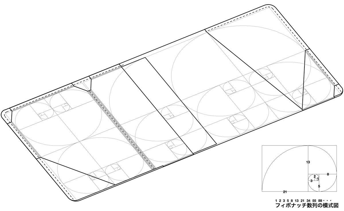 大切なのは黄金比にすることではありません。細部から全体に至るプロポーションが、自然や生命の摂理と深く関わりがあるフィボナッチ数列を為す事で、心に響く均整のとれたデザインになるのです。