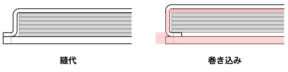 端部は、革を重ねて外側で縫い合わせます。これは「薄さ」にこだわるためです。革を折り返して内側に巻き込むと、サイズは小さくできますが、革が重なり、厚くなります。