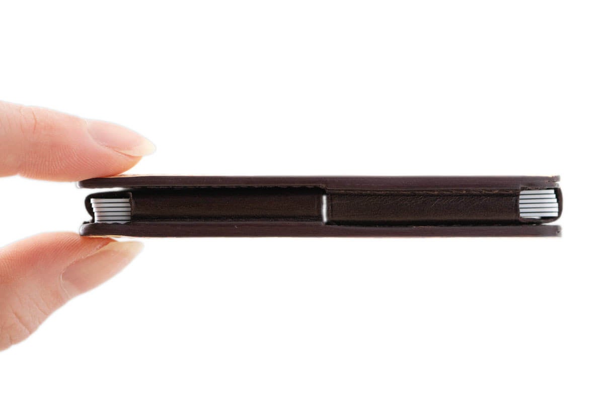 最大で紙幣15枚、コイン20枚、カード6枚を収納可能。 たっぷり収納しても、薄いままです。