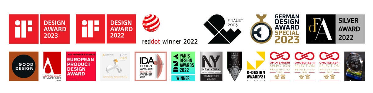 Hitoe® Foldシリーズは、機能的でミニマルなデザインが高く評価され、世界3大デザイン賞のiFデザイン賞、レッド・ドット・デザイン賞、IDEAをはじめ、ロンドン・ニューヨーク・パリ・ミラノなどの世界の主要なデザイン賞を19個受賞しました。