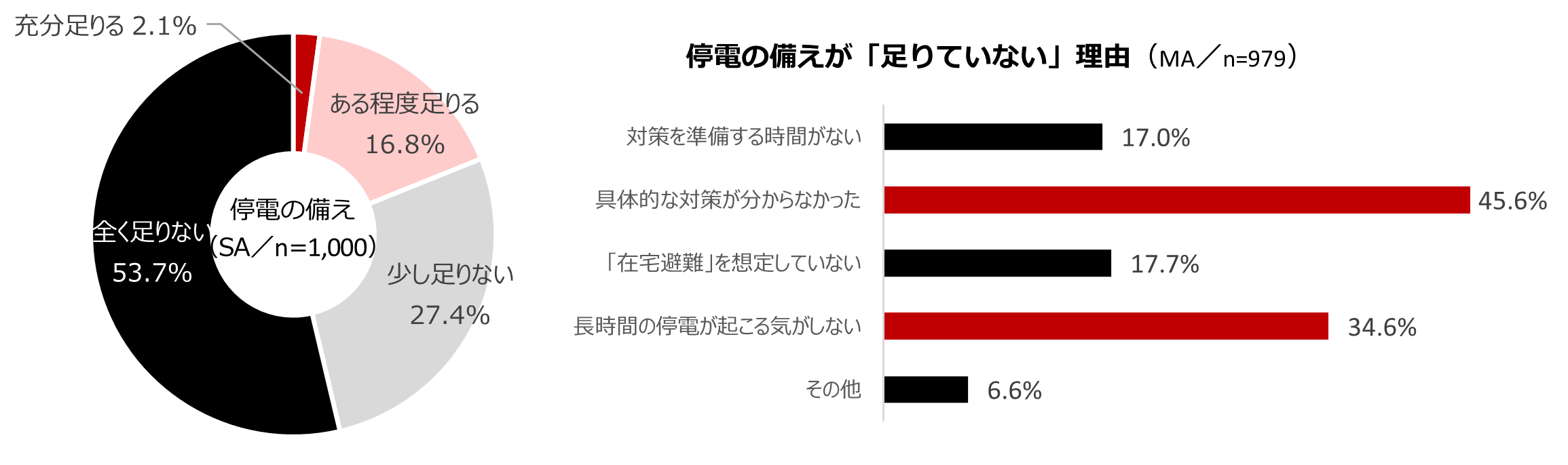 - 停電の備え、「足りない」約8割(81.1%)、「長期・大規模停電を想定していない」約5割(51.4%)
