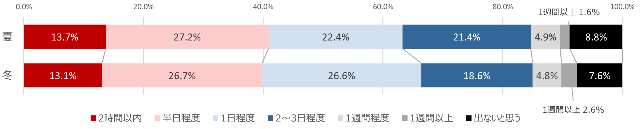 - 夏や冬の停電、自身・同居家族は空調が使えない場合、「1日(以内)で体調を崩す」6割超