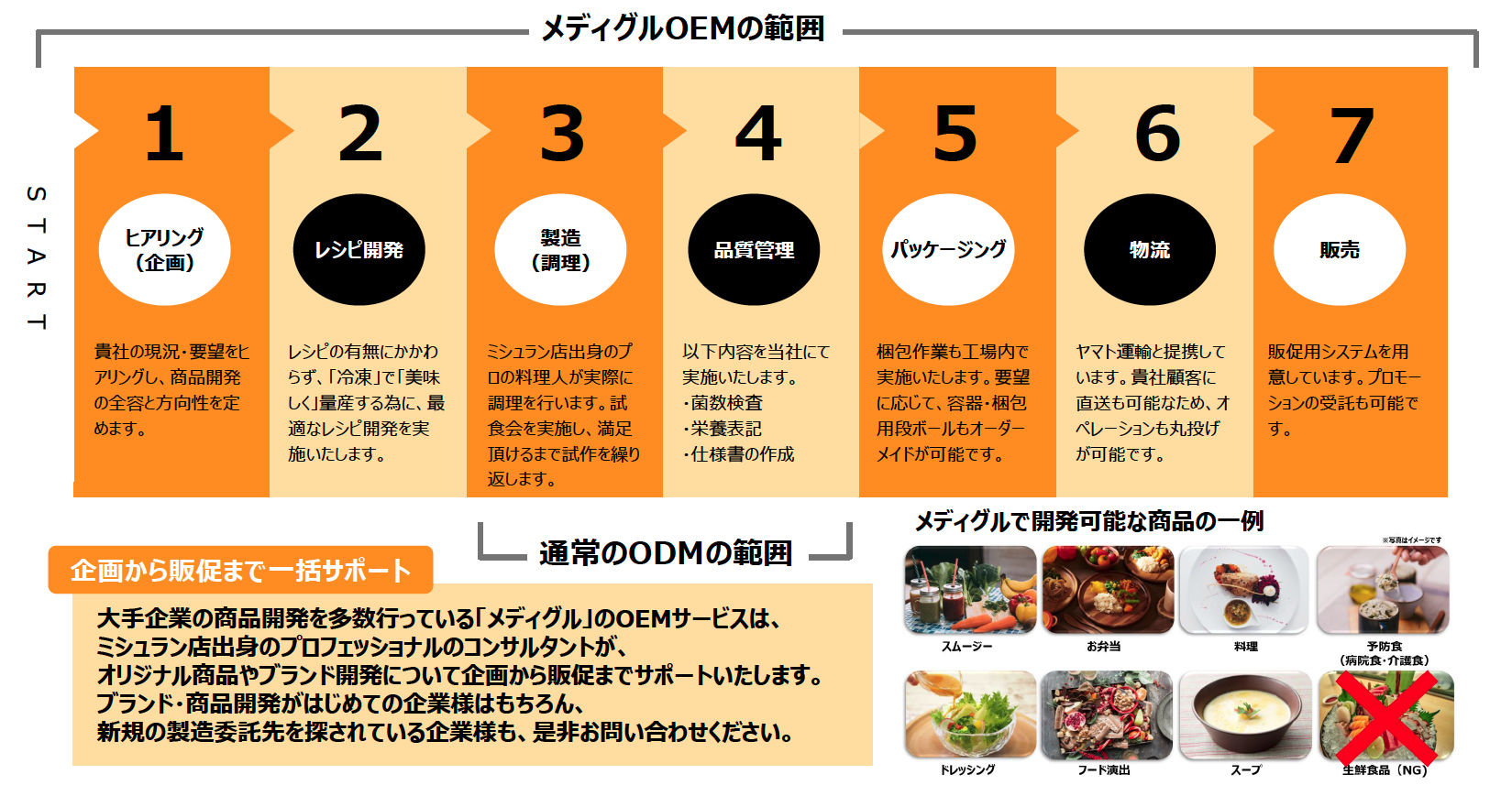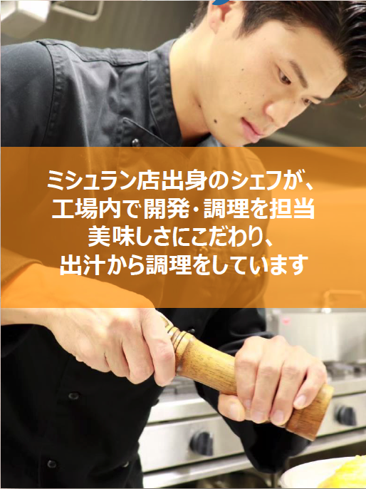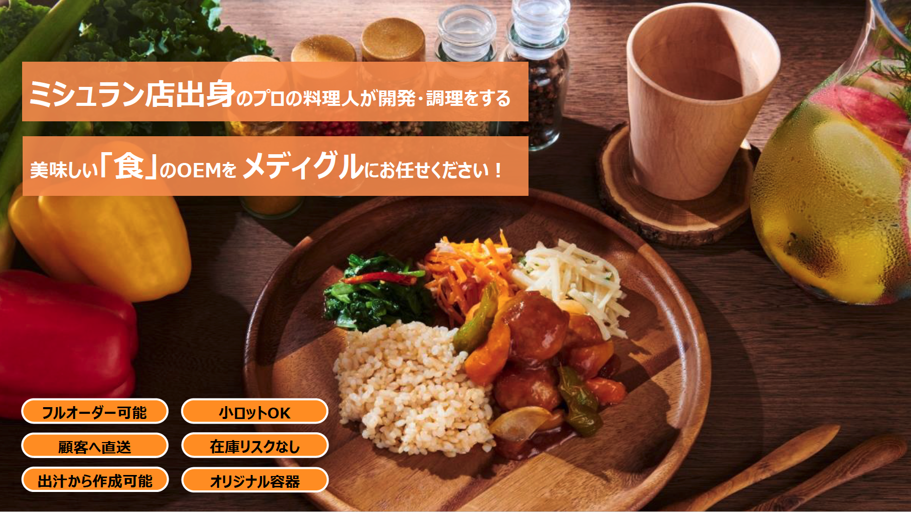 【冷凍食品メディグルOEM】小ロットからのフルオーダーを、ミシュラン店出身の料理人が開発・調理を提供、販促までフルサポート〜フルオーダー可能な、オリジナルブランド開発・商品化サポート〜