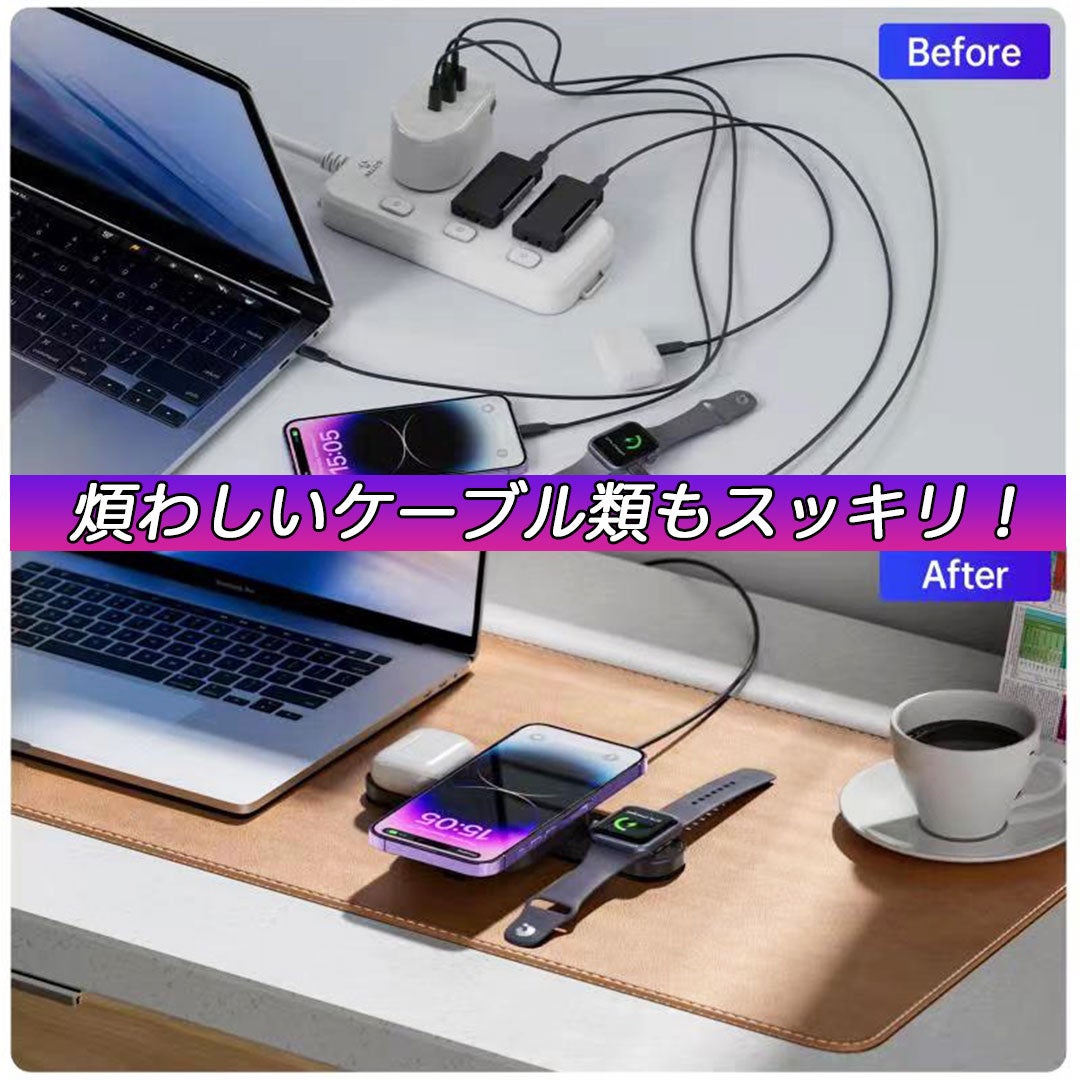 スマートホン、アップルウォッチ、ワイヤレスイヤホンを同時に楽々充電!他に専用充電器は必要なし!
