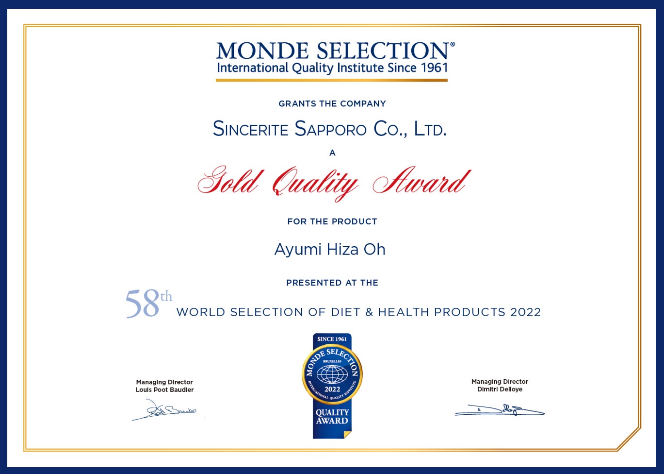 モンドセレクションは、製造品質、効果の科学的根拠、パッケージ表示の正当性など、消費者製品を総合的に評価する国際品質評価機関です。