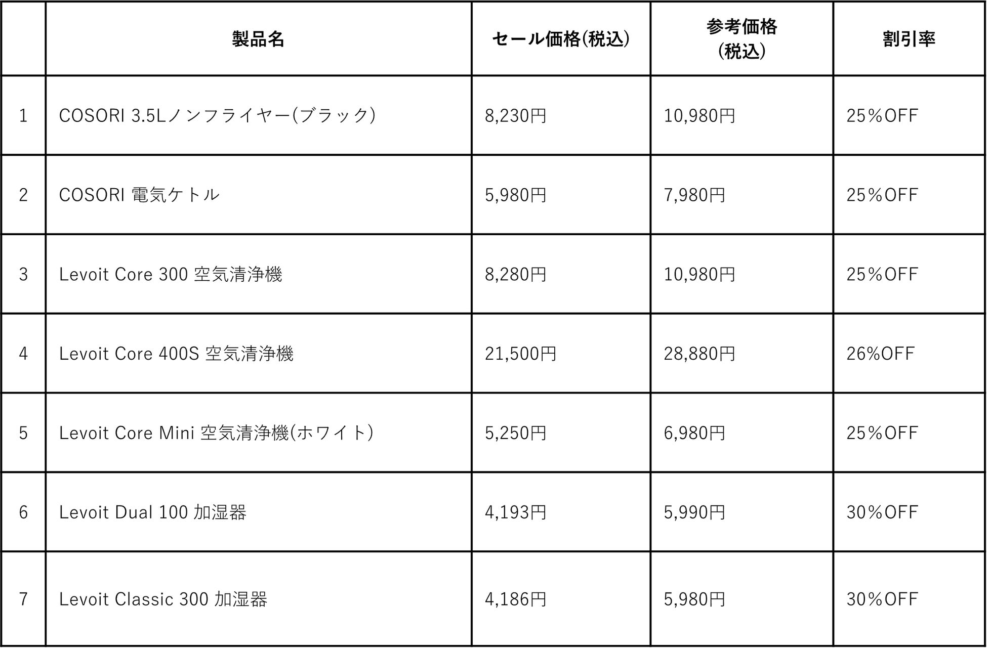 ■その他セール対象のCOSORI &Levoitの製品