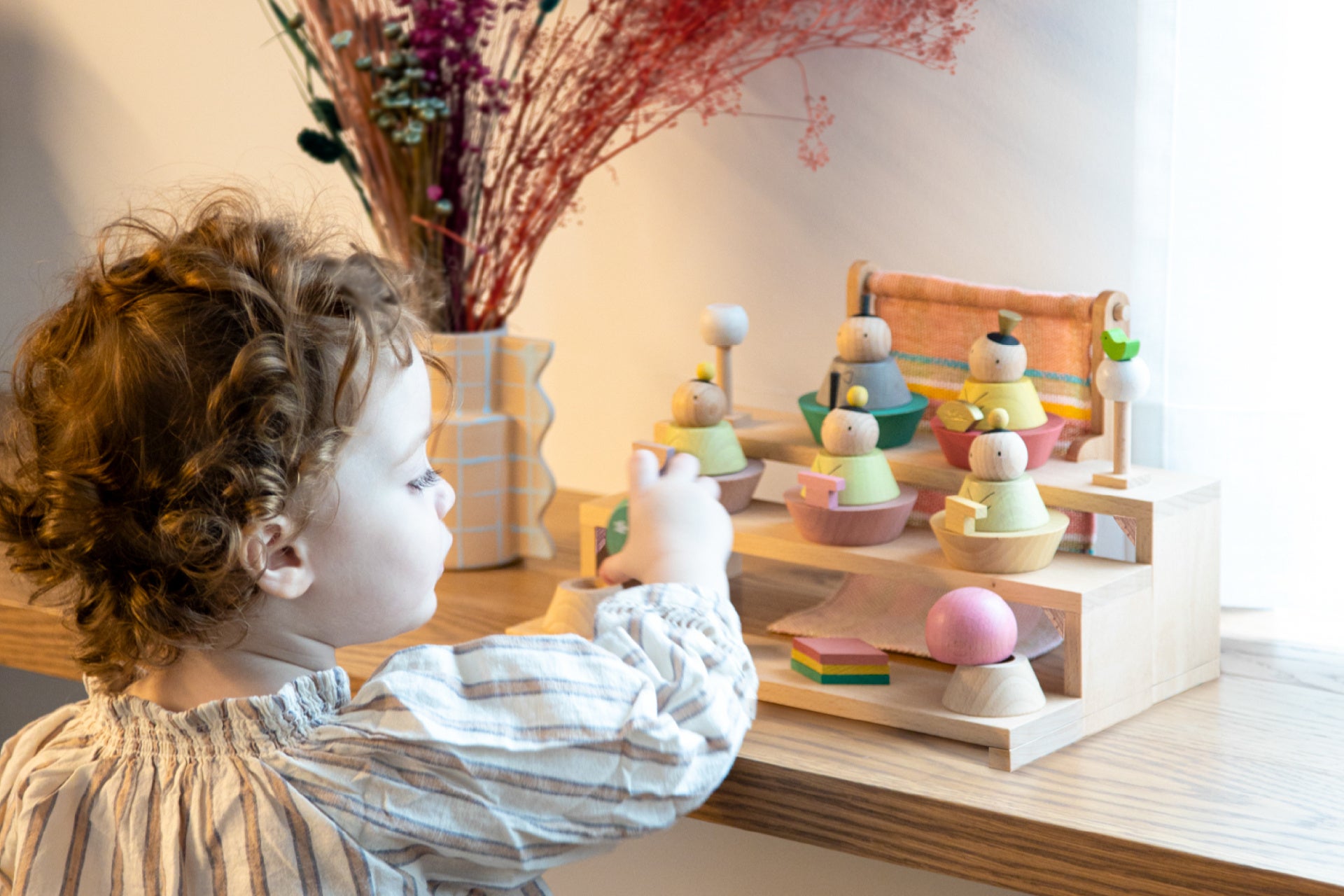 プーカシリーズは、現代のライフスタイルに合ったデザインを心がけています。同時展開の木製雛人形シリーズは、自然素材の温かみを活かしつつ、シンプルでコンパクトなデザインを実現。現代のインテリアにも調和し、ご家庭の雰囲気に合わせて飾ることができます。
