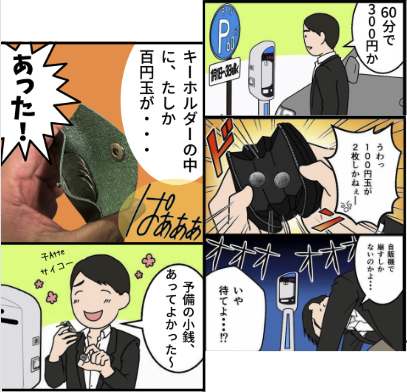 自販機、駐車場、コインロッカーなど、現金でしか支払えない場面で大活躍するサブ財布です。