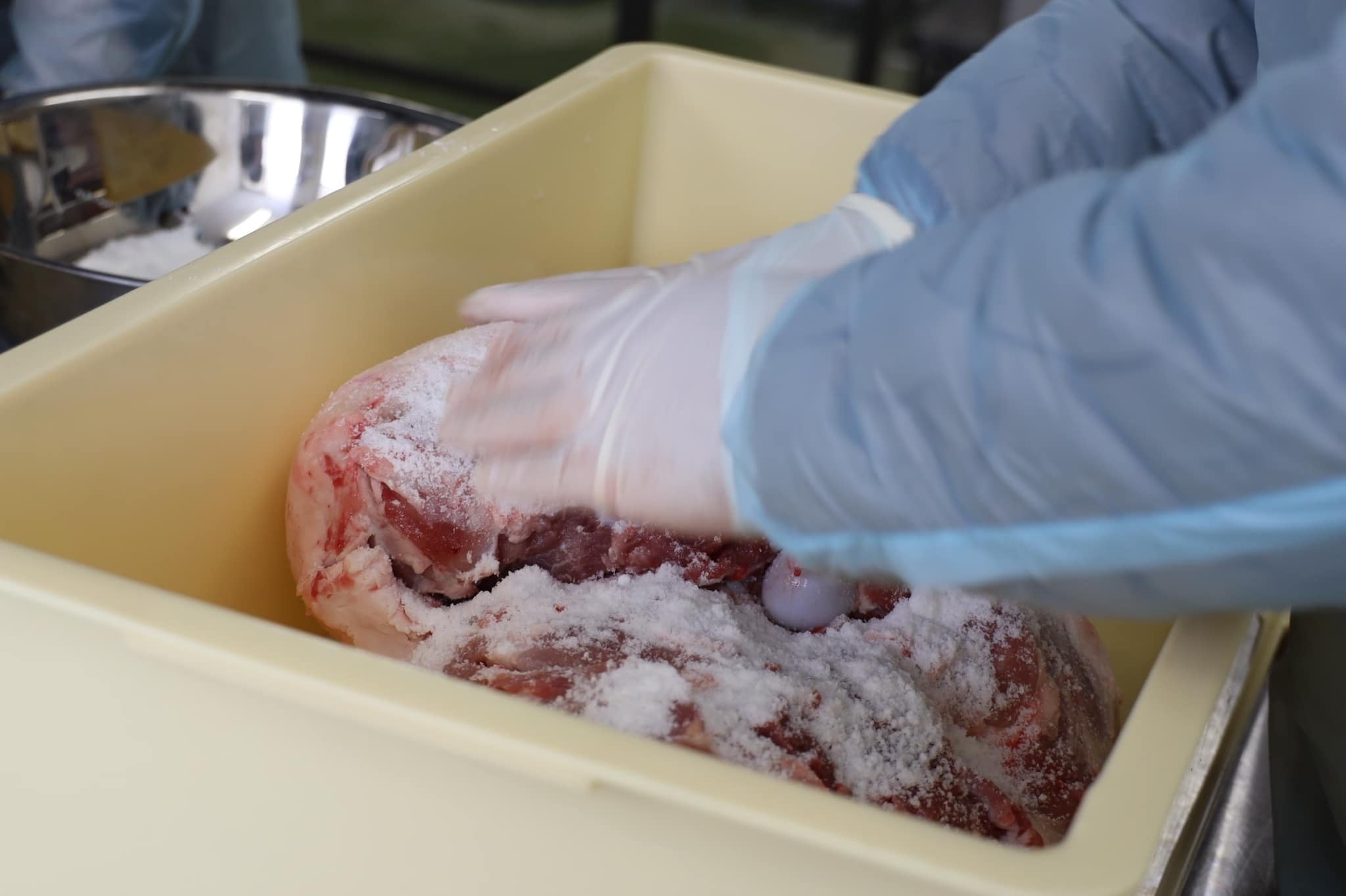 当イベントでは、長野の雪山に佇む工房で生ハムのレクチャーを受けると共に、仕込みの第1段階である骨抜き・血抜き・塩漬け工程を体験して頂きます。お客様が仕込んだ生ハムは、15か月以上の熟成期間を経て完成致します。