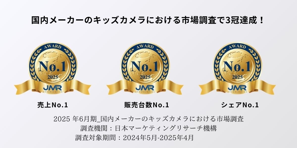 株式会社レクリッド(本社:福井県福井市)が展開する子ども向けカメラブランド『MiNiPiC(ミニピク)』は、2025年6月期の、国内メーカーのキッズカメラにおける市場調査の以下の3部門でNo.1を獲得しました。