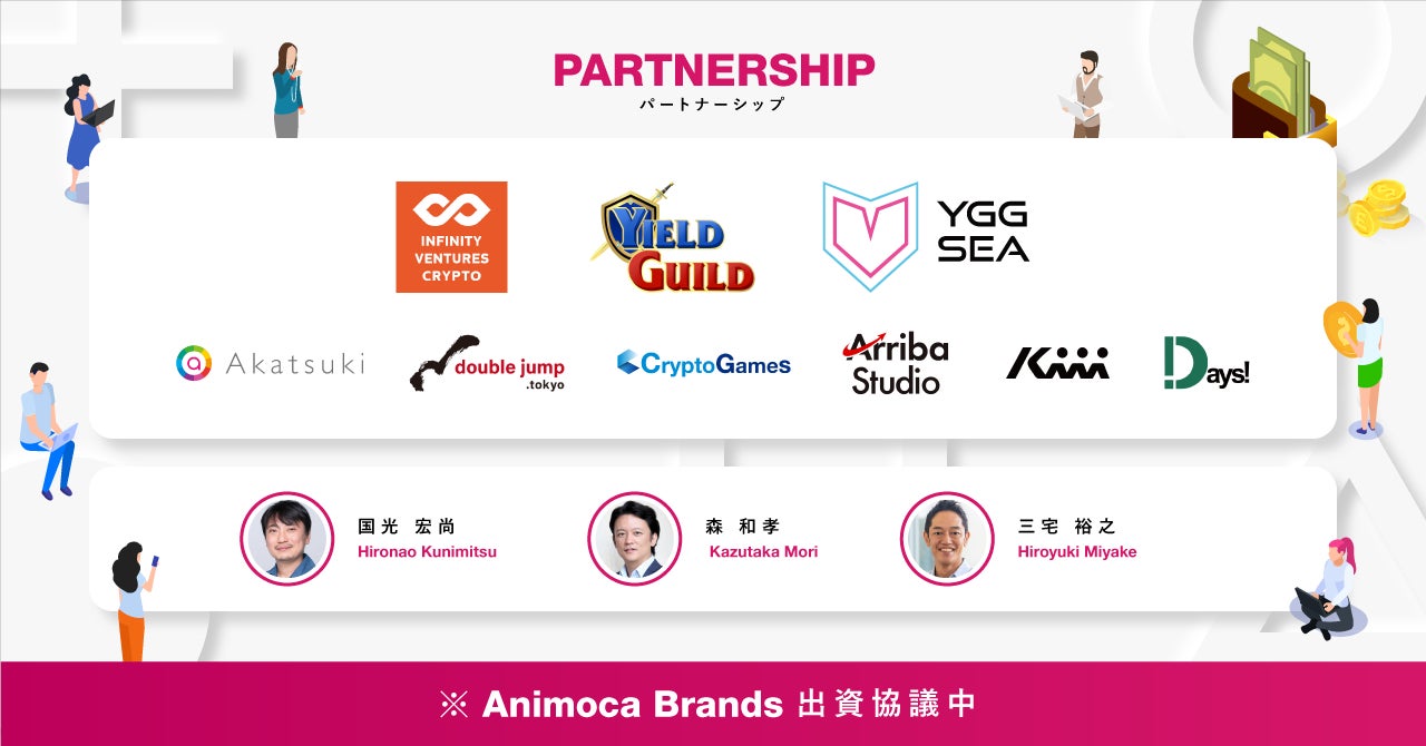 IVC、YGG/YGG SEA、アカツキ、double jump.tokyo、Crypto Games、アリーバ・スタジオ、Kiii、Days、投資家3名(国光宏尚、森和孝、三宅 裕之)