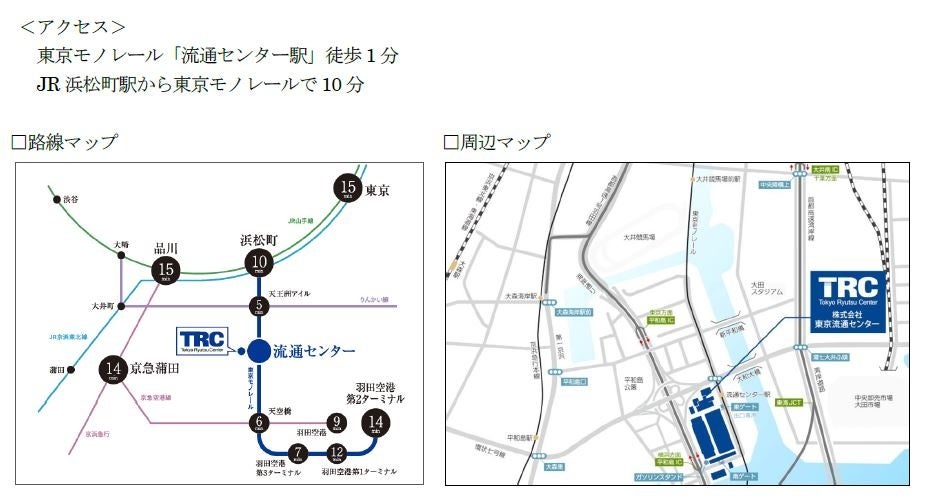 口まで約3km、また、JR 浜松町駅から東京モノレールで10 分の「流通センター」駅徒歩1 分と雇用優位性が