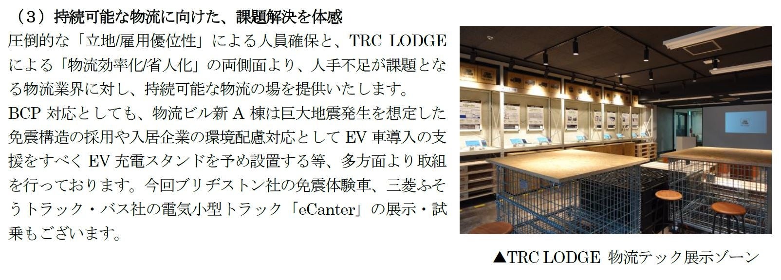 また当日は、TRC が運営する物流テックを集積し共同で課題を解決するコワーキングショールーム「TRC