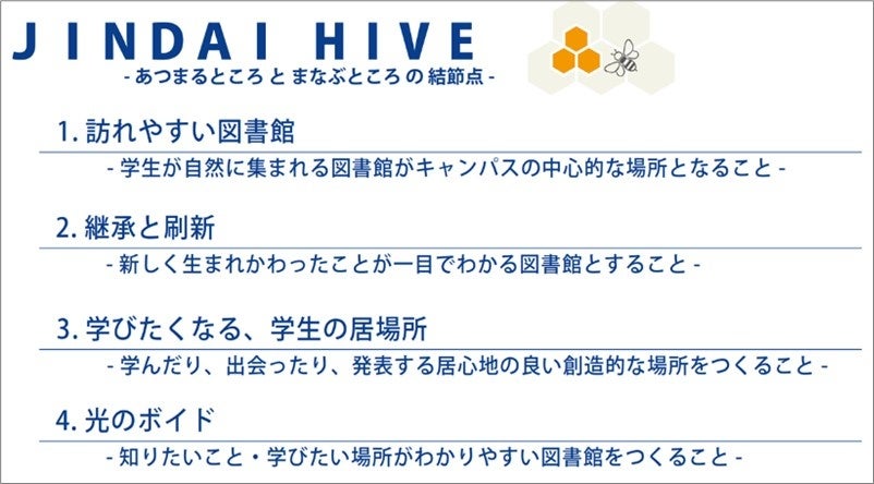 ・図書収集のさらなる充実に加え、電子資料や視聴覚資料を含めた本学の知を集結させた施設の整備と提供