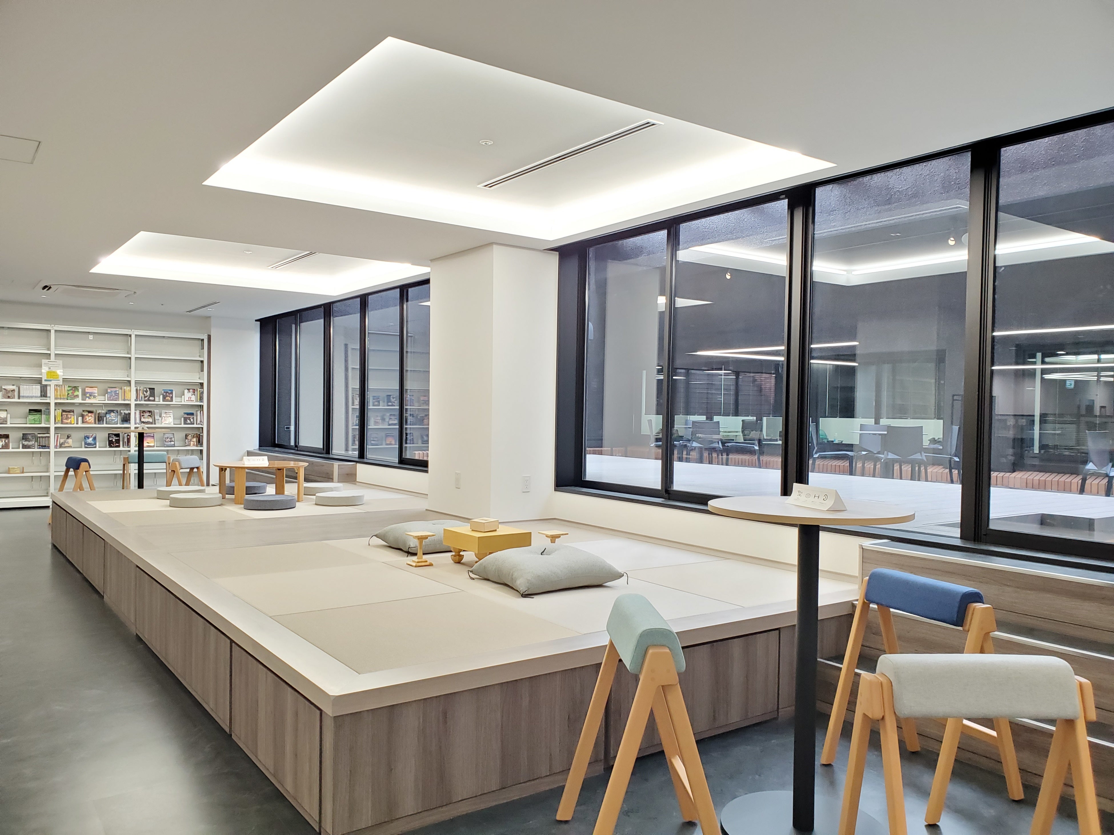 ・飲食可能なラウンジや屋外の休憩スペースとなるテラスや畳の小上がり等リフレッシュできる環境を整備