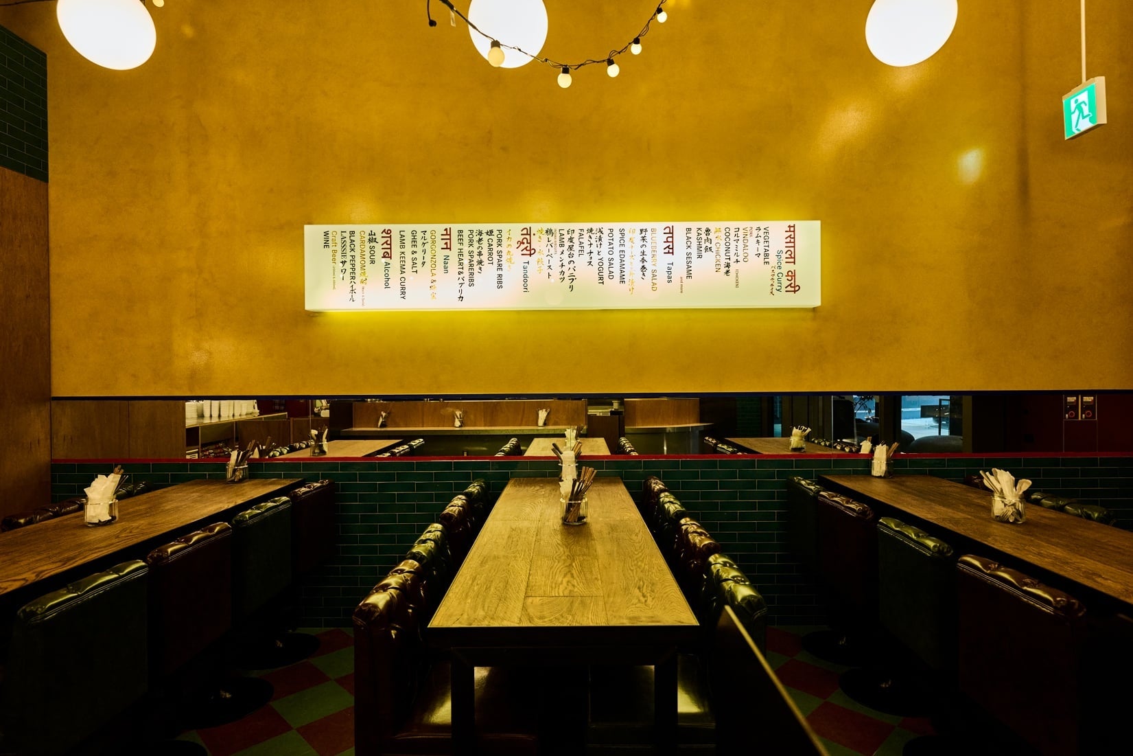 店内は東南アジアの屋台のような雰囲気もありつつ、クラシックなアメリカンダイナー風の看板など、各国のストリート感を詰め込み、「カオス」を表現しつつもどこか居心地のよい空間。カウンターからテーブル席まで配置しており、お仕事の昼休憩にサッとカリーを食べてパワーチャージしたり、1日の終わりにタンドールタパスをつまみながらクラフトビールで乾杯したりと、多彩な使い方が楽しめます。一部のタパスはランチタイムから提供していますので、昼飲みもできます。飲んだ〆にはぜひカリーをどうぞ。