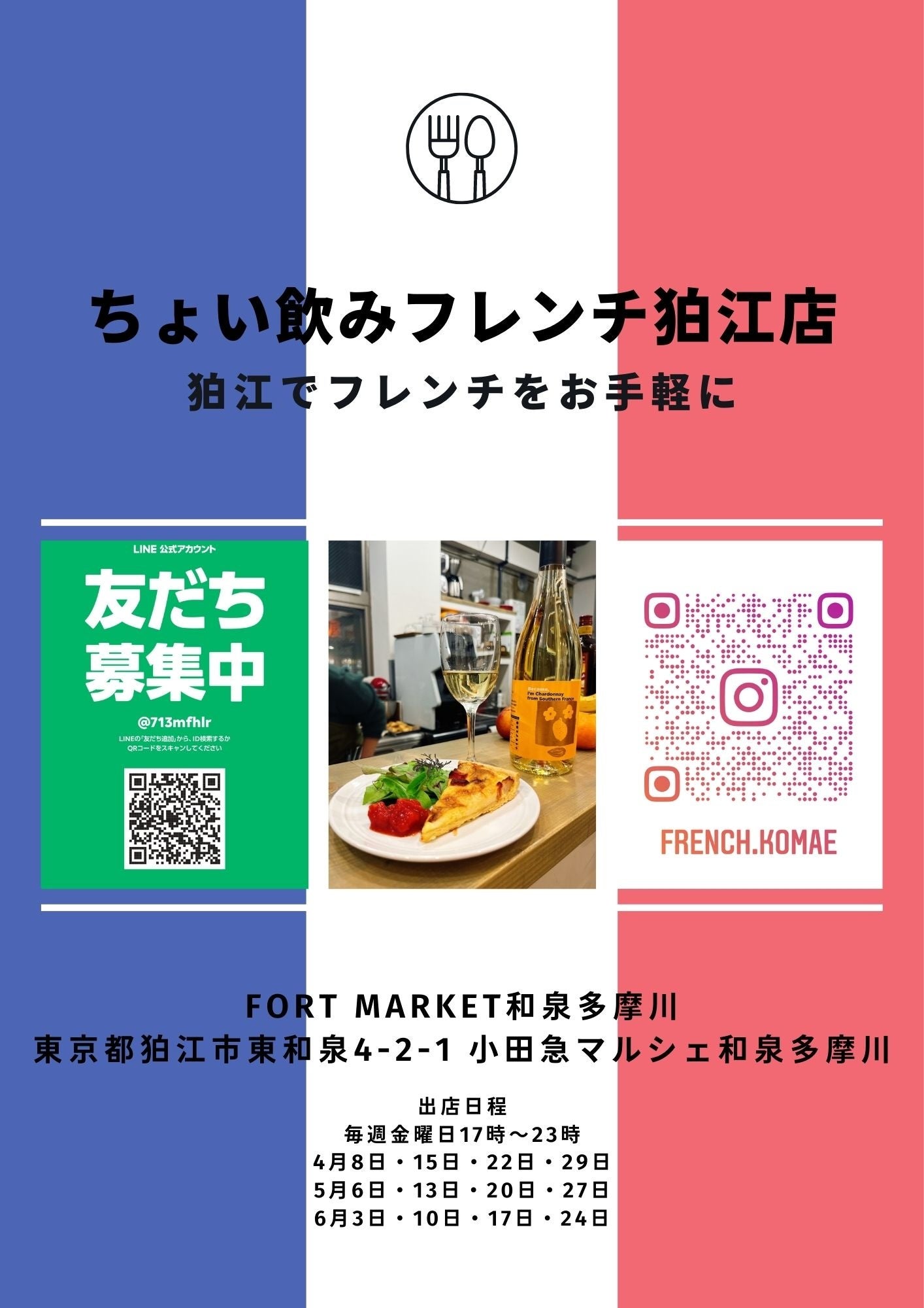 【新店オープン】「ちょい飲みフレンチ狛江店」を4月8日(金曜)17時にFORT MARKET和泉多摩川でオープンします。
