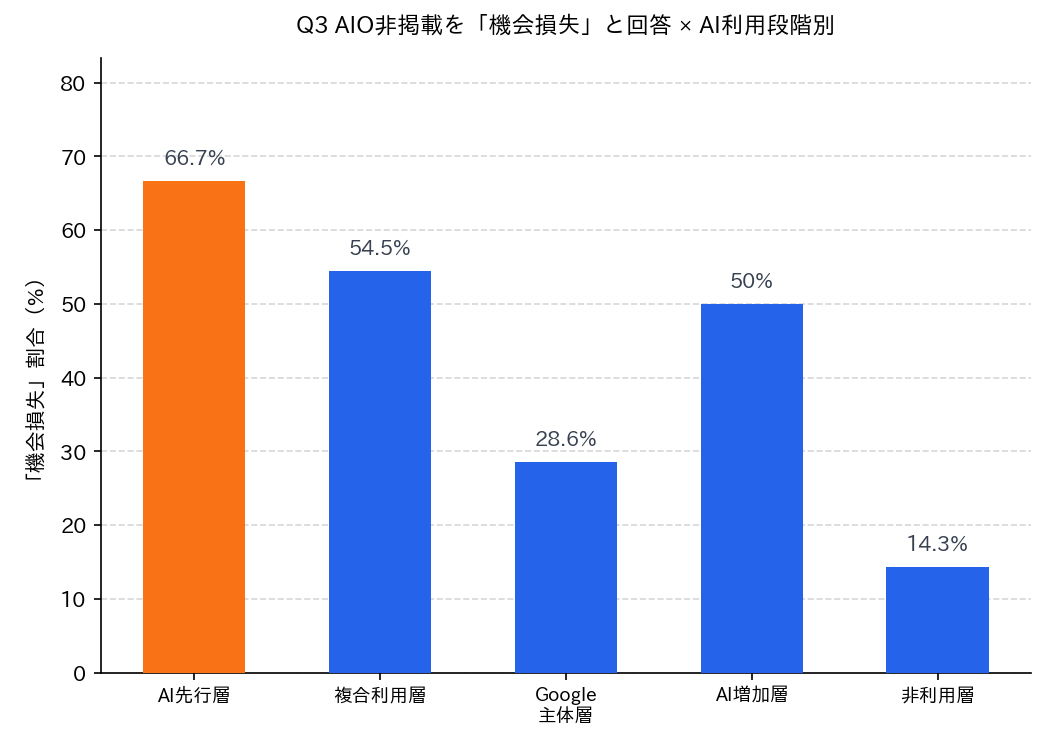 Q3:AI Overviews非掲載の機会損失|AI先行・複合層の過半数が「発見機会消失」と断言