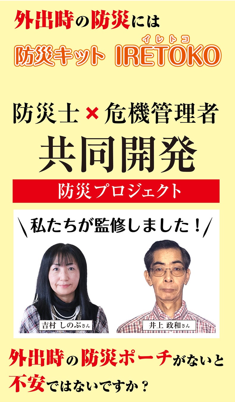 この時代は新しい防災キットが必要!万が一のために備える、外出専用 防災キットIRETOKO(イレトコ)が公開!!https://www.makuake.com/project/iretoko/