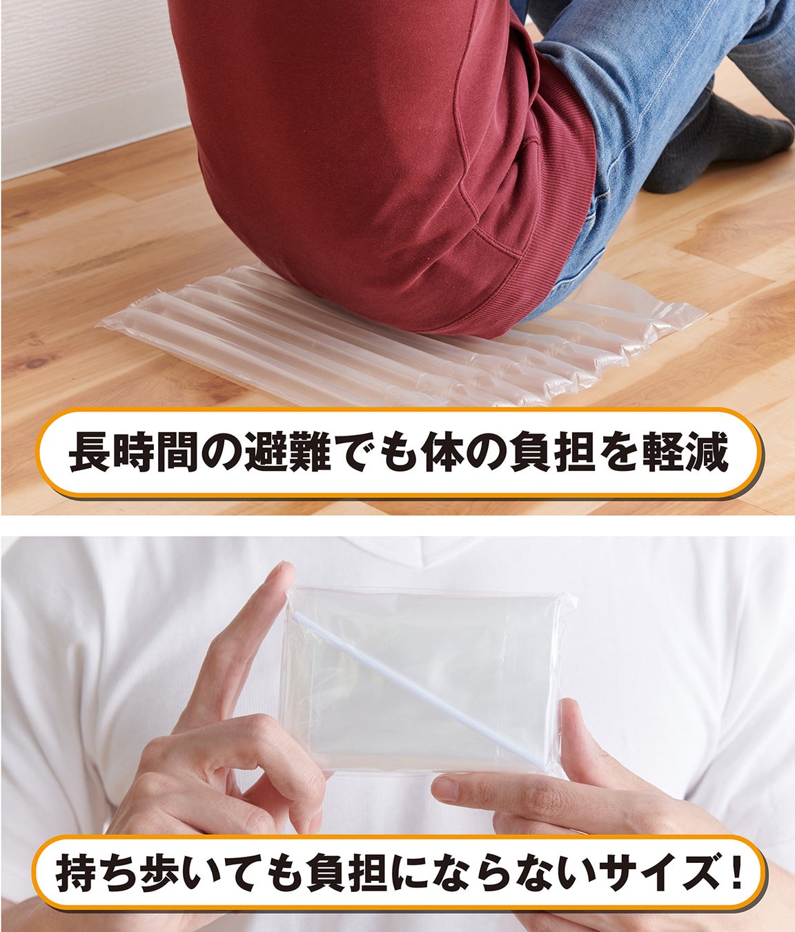 体育館などが避難所になった場合は、直接床に座るようになります。冬の体育館は、凍えるほど寒いです。そんな時の為にも、簡単に空気を入れる事が出来る「エア座布団」があれば、冷たい床からお尻を守ることが出来ます。