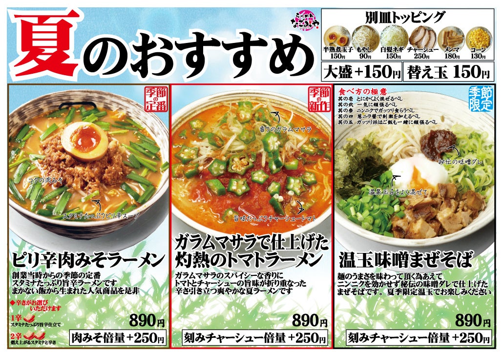 ら~めんなごみや、夏のおすすめメニュー2022年6月1日販売開始