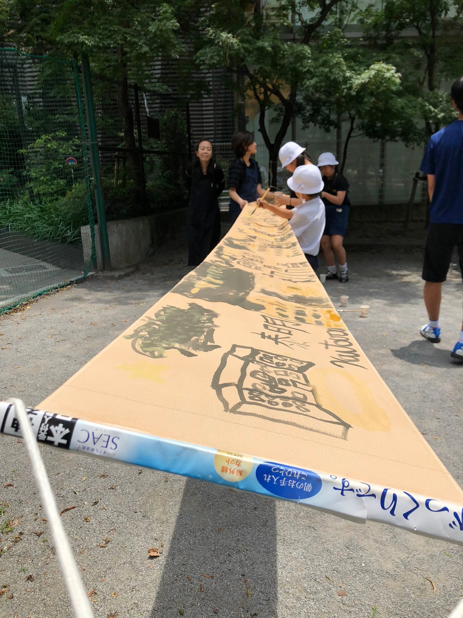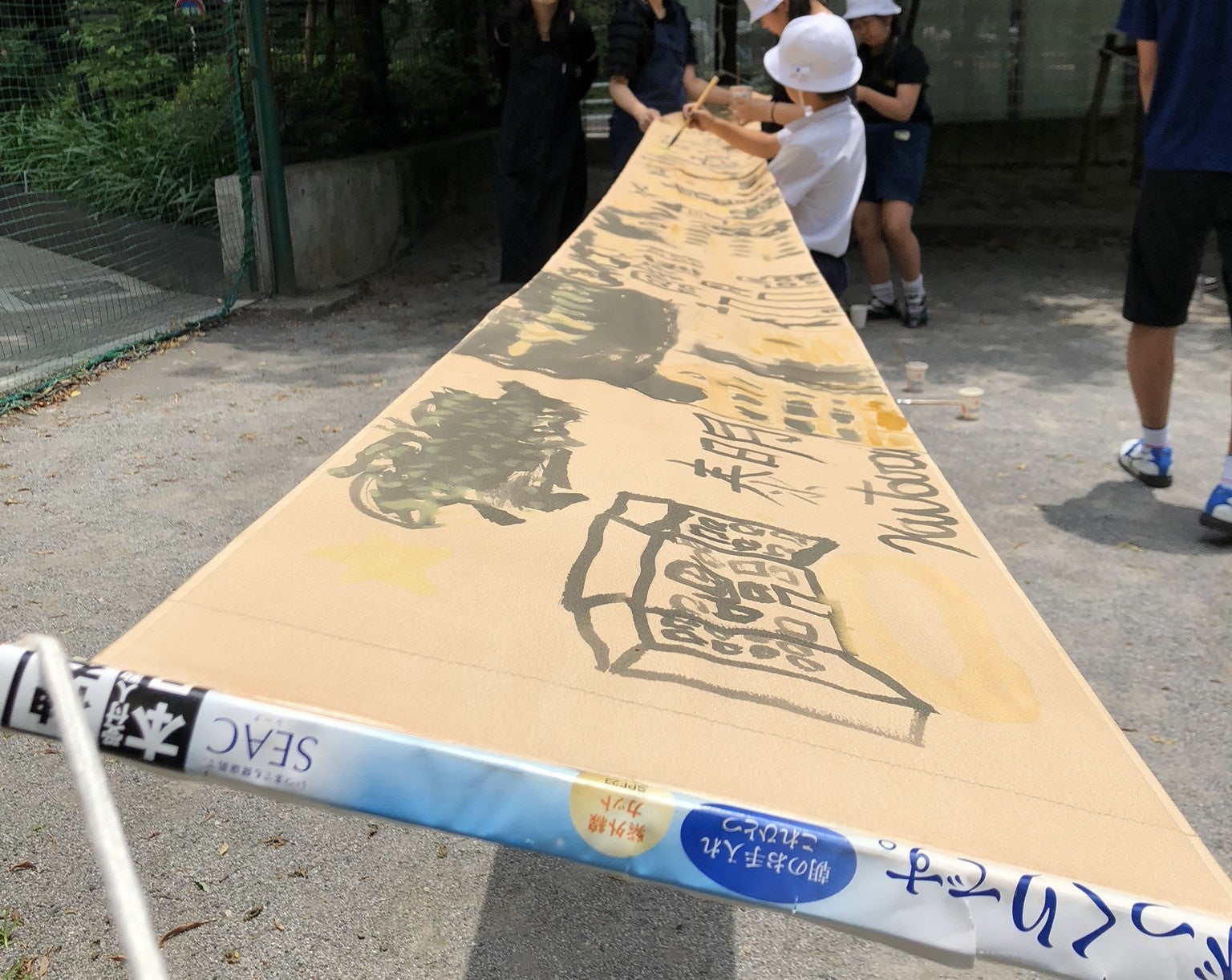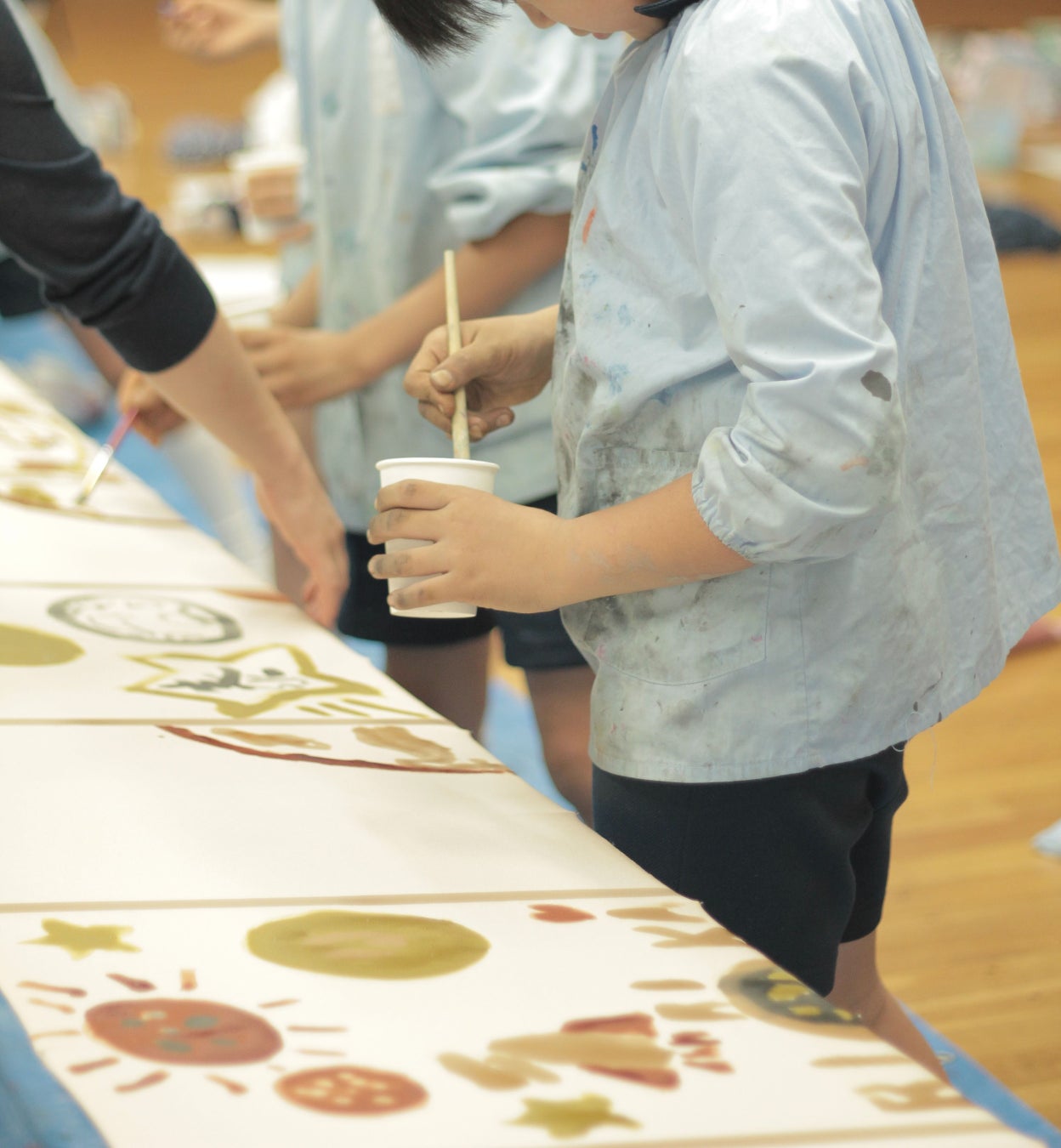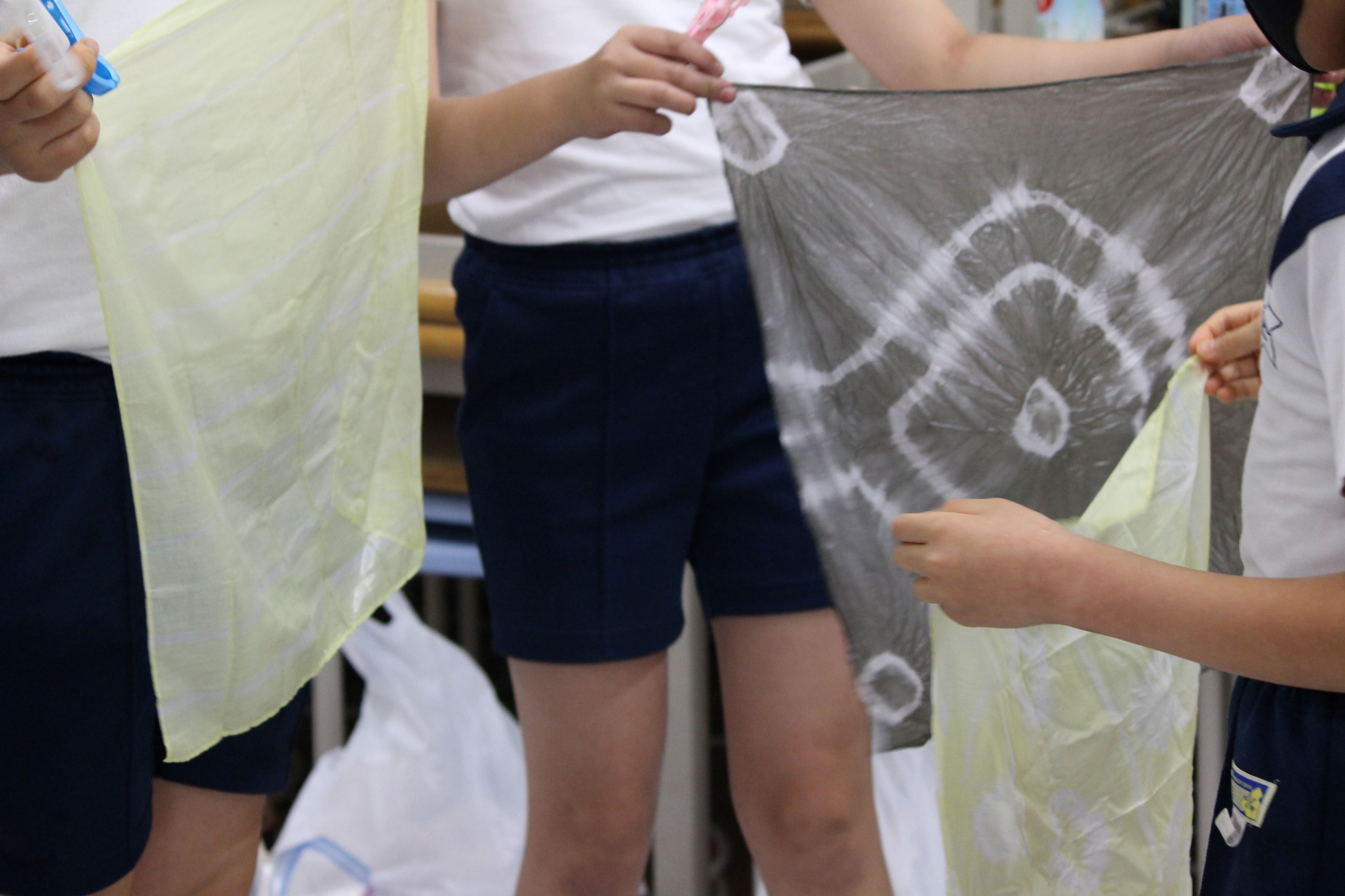 2017 年の第20 回からは、創業者・泉二の母校である鹿児島県大島郡(奄美大島龍郷町立大勝小学校の5年生)と東京中央区立泰明小学校と子供たちが、事前にそれぞれの地域の歴史や風土を紹介するビデオレターを作成し、3 回目の染めの実習ではオンラインによる交流授業を行っています。