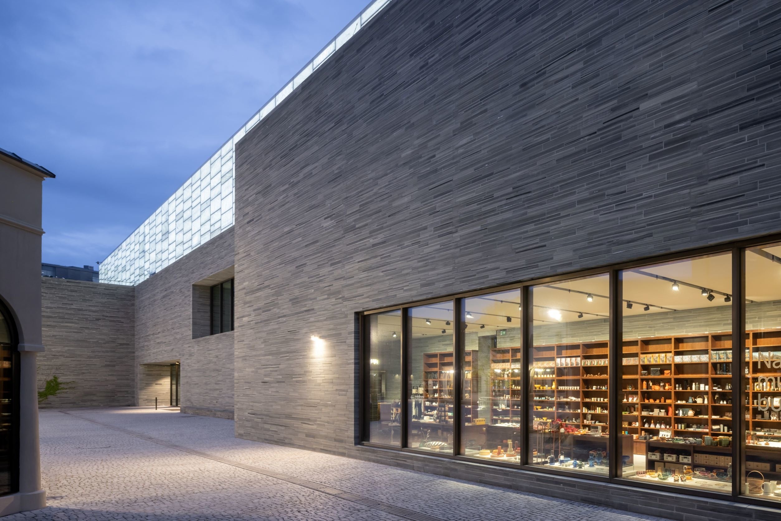 建築家クラウス・シューヴェルク氏の設計による建物は、奇をてらわず低層で、何世紀にもわたって美術品を収蔵するための堅牢さと持続性を追求しています。年月を経ても品格を保つオーク材、ブロンズ、大理石などの素材を使用、ファサード全体はノルウェー産のスレートで覆われています。環境にも最大限の配慮がなされ、現行の建築基準に比べて温室効果ガスの排出を50%以上削減できるように設計されています。