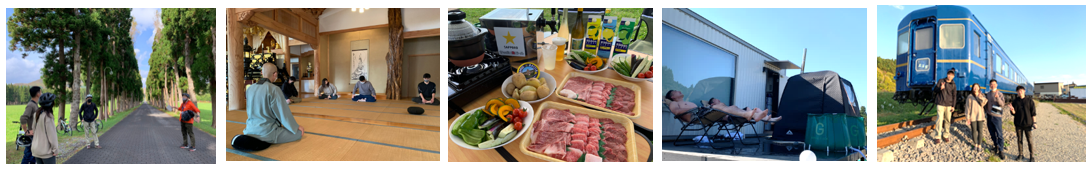 【ポイント】憧れのブルートレイン「寝台列車北斗星」に泊まり、日中は、施設周辺の茂辺地川流域からTVCMの撮影場所としも有名な絶景の当別トラピスト修道院周辺エリアを北斗市観光の専門ガイドがアテンドし、最新Eバイクで巡ります。滞在中には、津軽海峡を眼下に見渡せる「当別風の丘」でランチと休息を行い、夜には、北斗星スクエアで地元北斗市の自慢の食材をBBQ等が楽しめます。また、北斗星を眺めながらテントサウナで整うこともできるリトリートです。