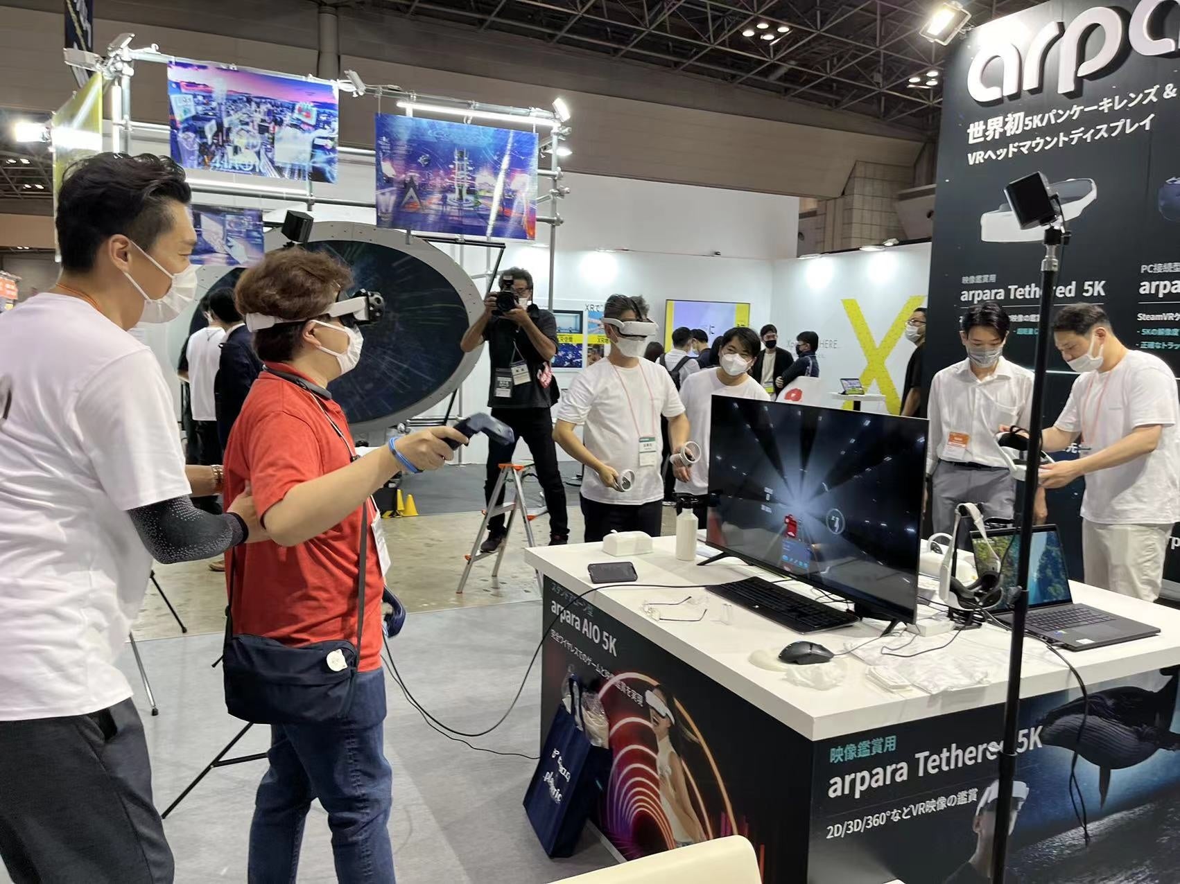 当日ブースでは、 6月21日(火)よりCAMPFIREで販売されている最新の製品「arpara オールインワン 5K」 および「arpara Tethered 5K」「arpara Gaming Kit」を展示し、来場いただいた方に映像鑑賞やゲームをご体験いただきました。