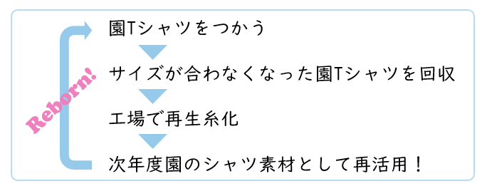 Tシャツの素材には、園児が前年度着用した園Tシャツを回収し再生した糸を使用。園児も一緒にサスティナブルな活動にチャレンジしました。
