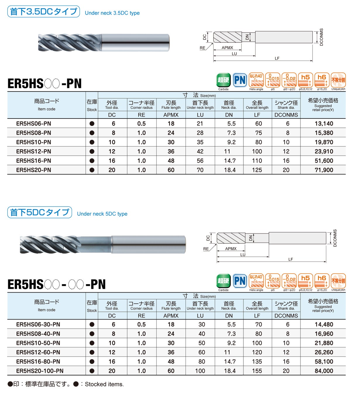 高能率側面切削用エンドミル「ER5HS-PN」2023年1月20日新発売