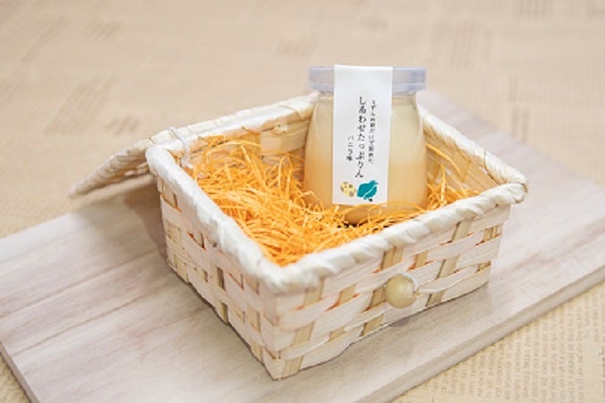 ”食べれば誰もが幸せになるように”と願いを込めて、 「しあわせたっぷりん」と名付けました。 お子様からご年配の方までお楽しみいただける商品です。