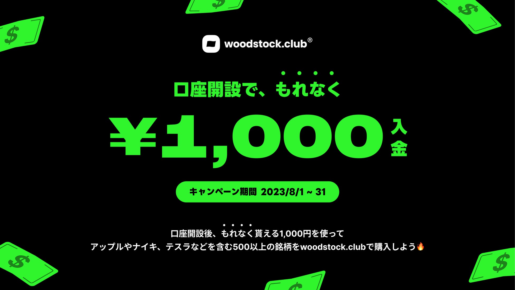もれなく現金1000円プレゼント!米国株投資のwoodstock.club、新規口座開設キャンペーンスタート!