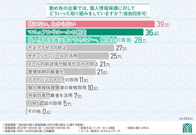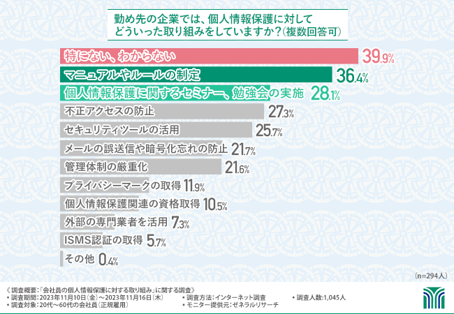 はじめに、勤め先の企業では個人情報保護に対してどういった「取り組み」をしているのかを伺いました。