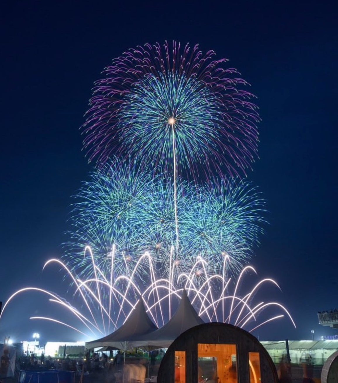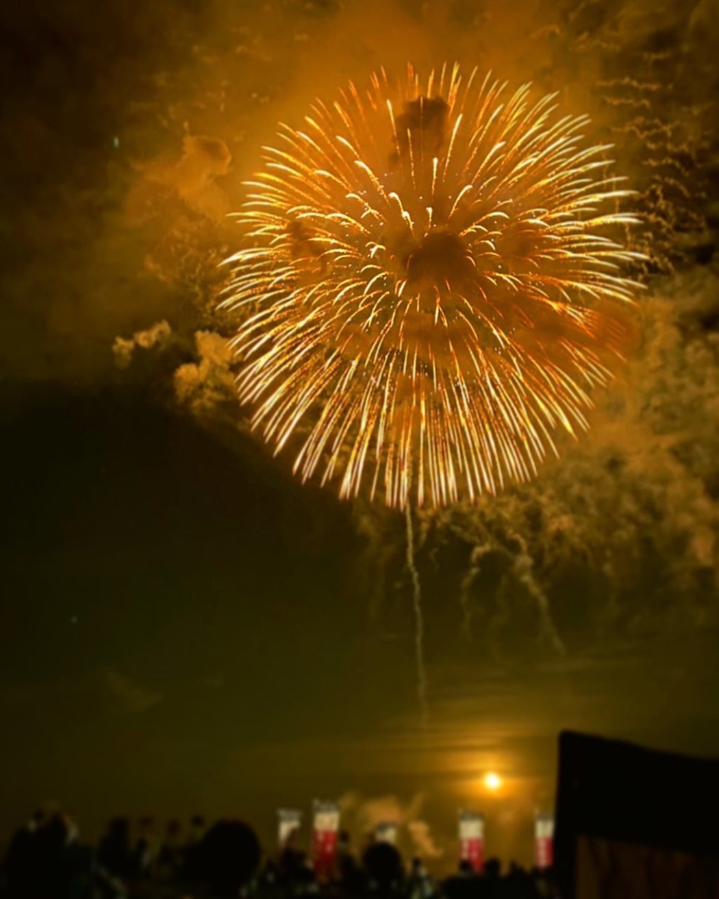 3年ぶりとなった昨年度の本花火大会から一気に花火の量を増やし今年は2倍となる12,000発の花火が打ち上げられました。内閣総理大臣賞を最多の21回受賞した『野村花火工業』の花火師によって、一発目から音楽とともに連鎖的で盛大な花火が打ち上げられ、約2時間鮮やかに夜空一面を埋め尽くし、海面に映る花火は言葉にならない幻想的な画となりました。