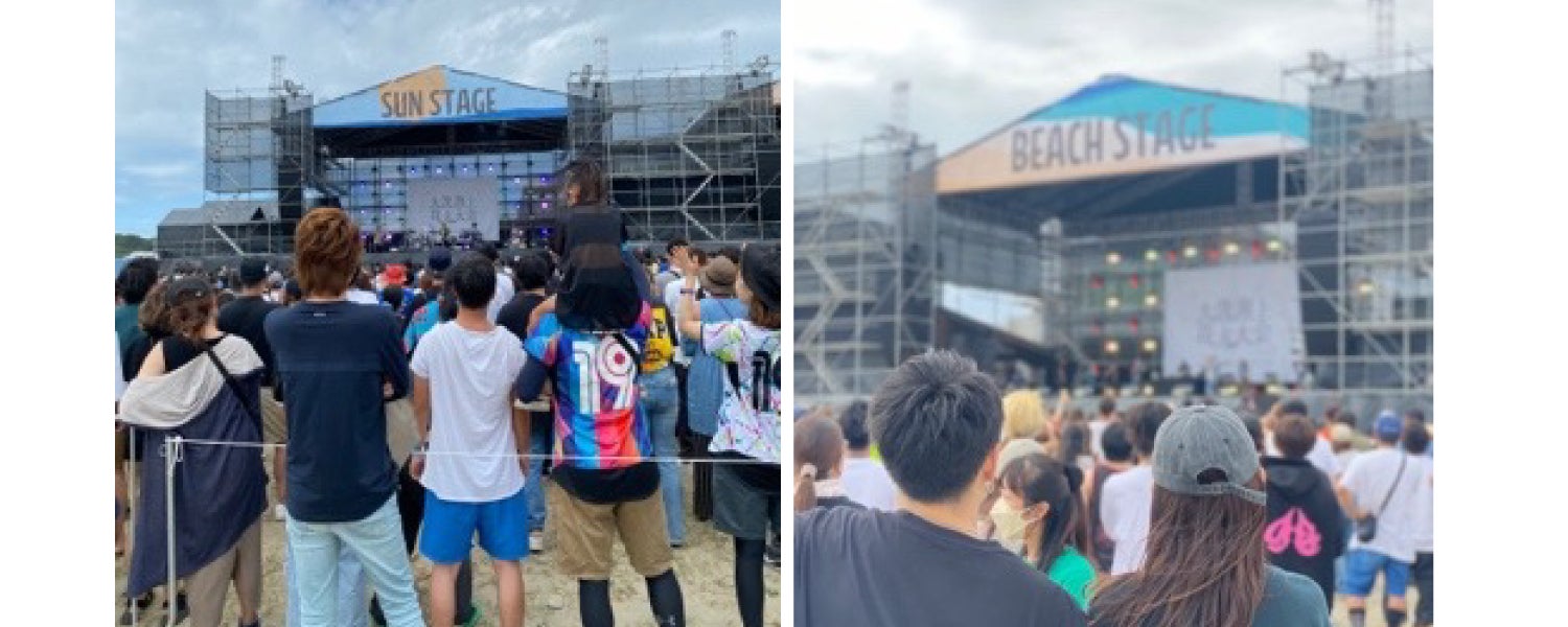 今年はステージを3つに増やし、「SUN STAGE」「BEACH STAGE」「FIELD STAGE」で同時進行でライブをおこないました。豪華アーティストによるライブは30組にも及び、観客を大いに盛り上げました。