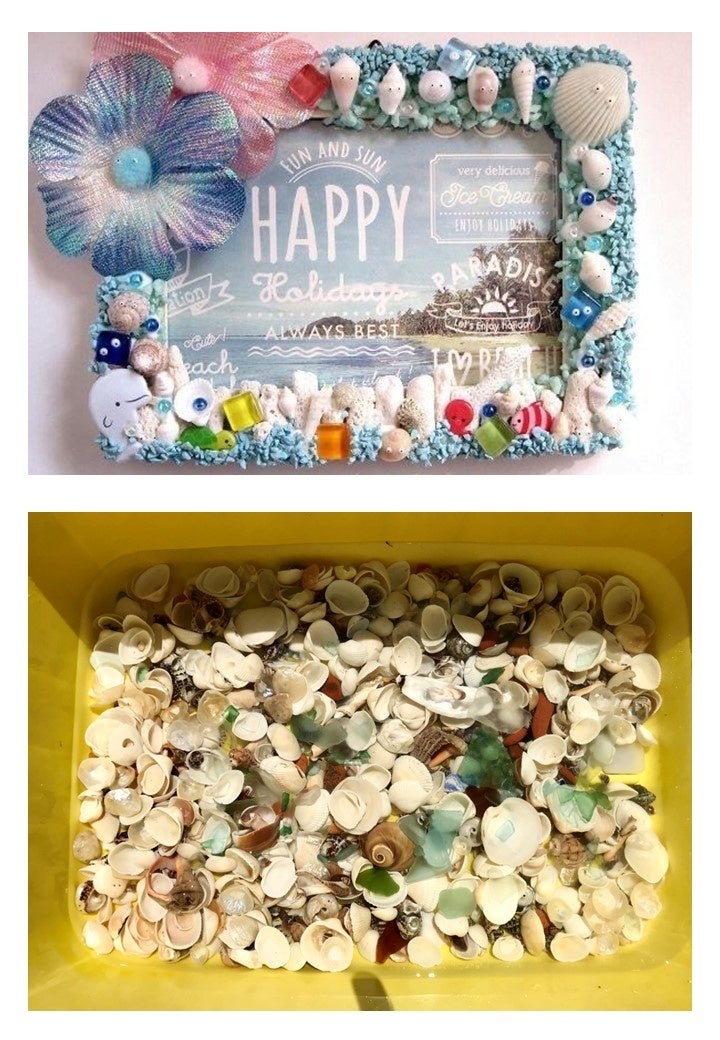 ・内 容:常滑りんくうビーチで採れた貝殻、シーグラスを使用したオリジナルフォトフレーム作りのワークショップを実施。