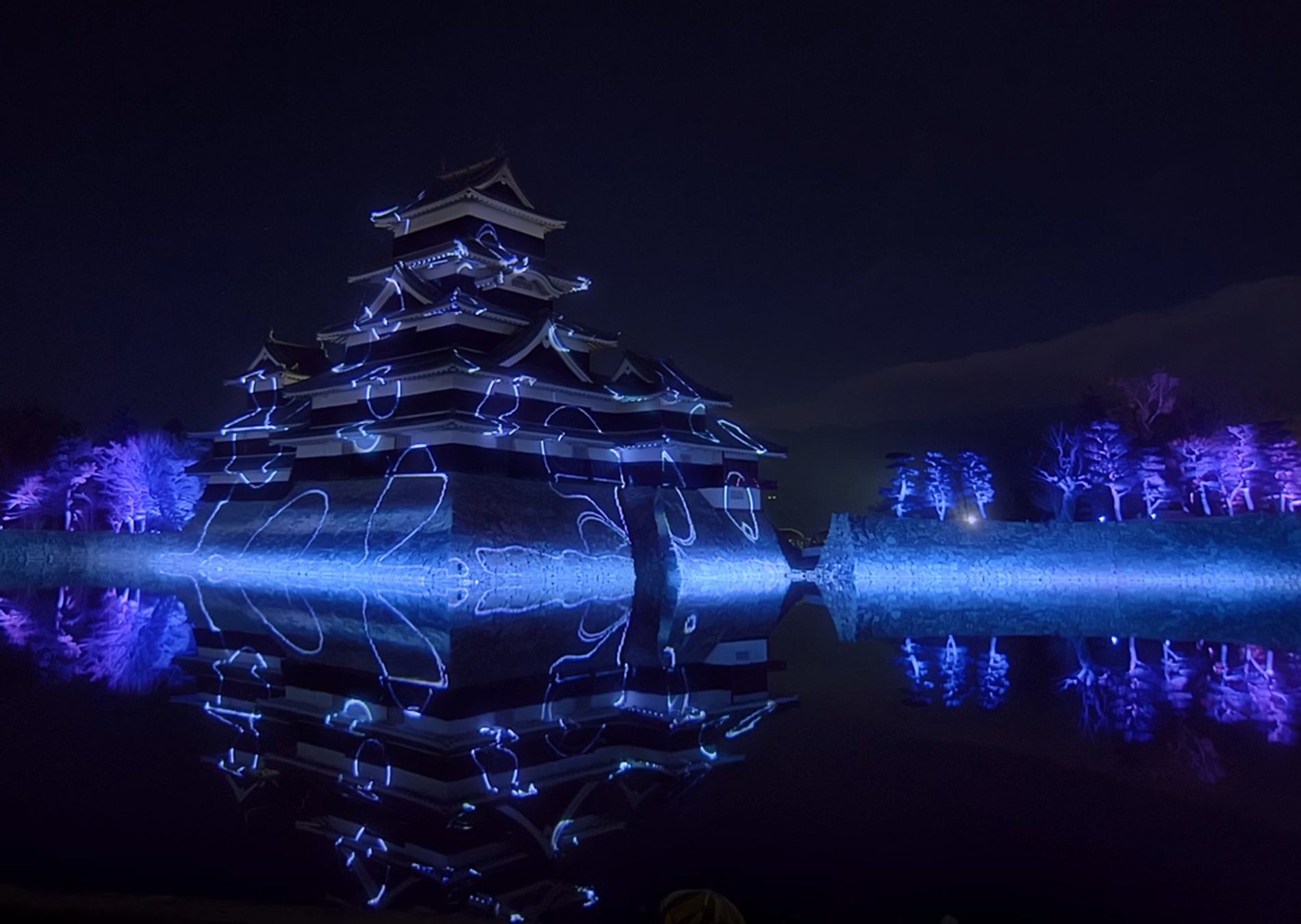 2022年12月1日(木)より「光と氷の城下町フェスティバル」の「松本市イルミネーション2022-23」にてレーザーマッピング「松本城〜氷晶きらめく水鏡〜」が実施中です。2022年度は「願い」をテーマとした新しい3つの演出を公開しています。