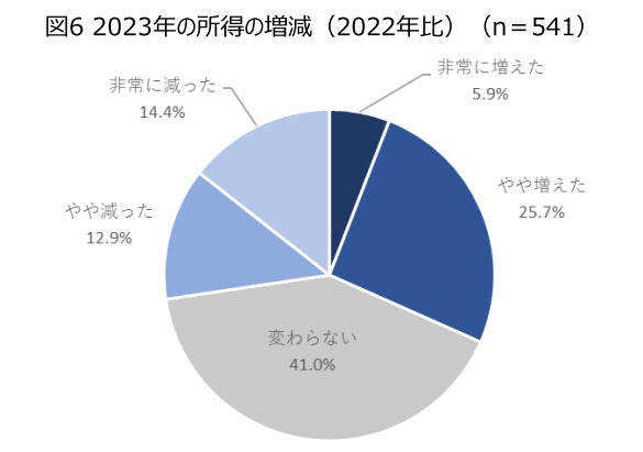 2023年に「所得が増えた」と回答した人は約3割にとどまる